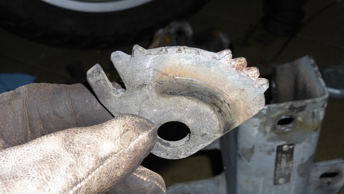 Ogólnie najazd jest w niezłym stanie, na szczęście amortyzator okazał się sprawny, bardzo ciężko się go wciska i powoli się wysuwa. Niestety ktoś kiedyś spiłował zęby z blachy ustalającej położenie dźwigni hamulca więc albo ją kupię albo dorobię. Co ciekawe najazd nie ma żadnej wajchy do blokowania hamulca przy cofaniu.