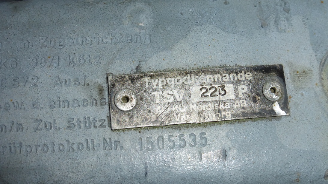 Przyczepa ma oś i najazd firmy AL-KO, ten drugi prawie identyczny jak niewiadowski. Ruszyłem go bo potrzebował regeneracji, tuleje miały luz, mieszek pęknięty, zaczep do którego nie miałem zaufania, itd. Oczywiście nie chciał posłusznie odkręcić się od ramy, w ruch poszła szlifierka, rozbiórka na części to już prosta sprawa. Ciekawostką okazała się tabliczka z jakimiś skandynawskimi napisami, chyba coś podobnego jest u Vvariorów.