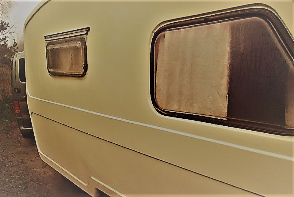 Piękne są te Intercampy z zewnątrz. Mało które przyczepy nie będące Niewiadówkami tak mi się podobają. Ten akurat egzemplarz pozalewany w środku konkretnie, aż para skrapla się na szybach od wewnątrz. Wnętrze oczywiscie do kapitalnego remontu, zapewne wraz z podłogą, uszczelnienie budy i całą resztą. Duuużo pracy i jeszcze wiecej kasy, ale myślę, że warta uwagi dla pasjonatow tej marki.