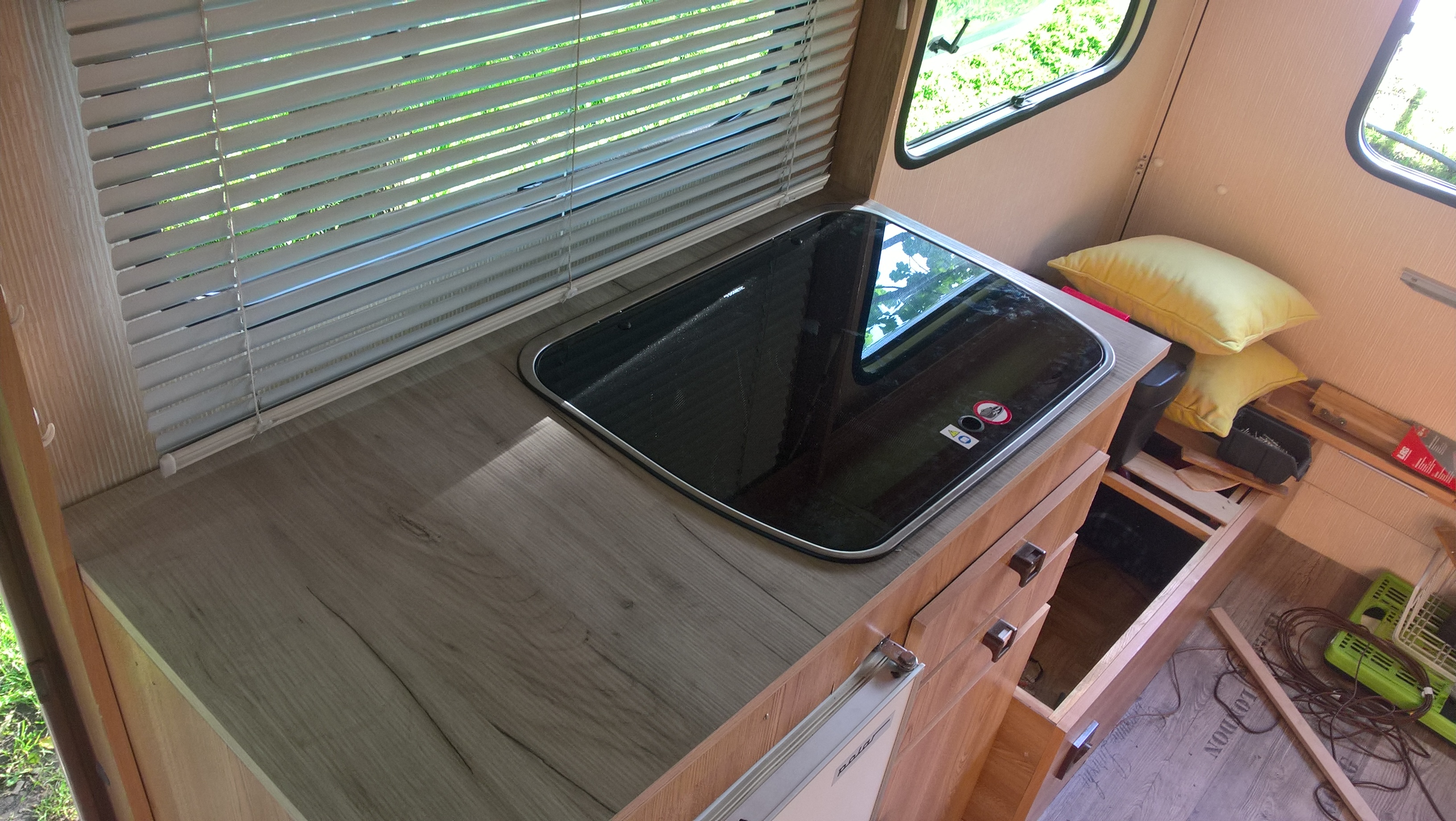 Ponieważ poprzedni właściciele zdemontowali kuchnię (kuchenkę i zlew), instalację gazu, instalację wody, musieliśmy to wszystko zbudować od nowa. Najwięcej kłopotu sprawiło mi ustanie czy inst.gazu propan - butan może być oparta tylko na elastycznym wężu gumowym, czy też musi być (jak w większości przyczep) zbudowana z miedzianych rurek w otulinie gumowej. Ostatecznie zdecydowałem się na wąż gumowy 8mm na całej długości. Butla gazowa, propan/kompozytowa. Jednocześnie zamontowaliśmy instalację wodną - a tą chwilę tylko zimna woda (jest plan na przyszły rok - montaż boilera, oraz prysznica) i prądową (12v i 230v). Walczymy dalej :)