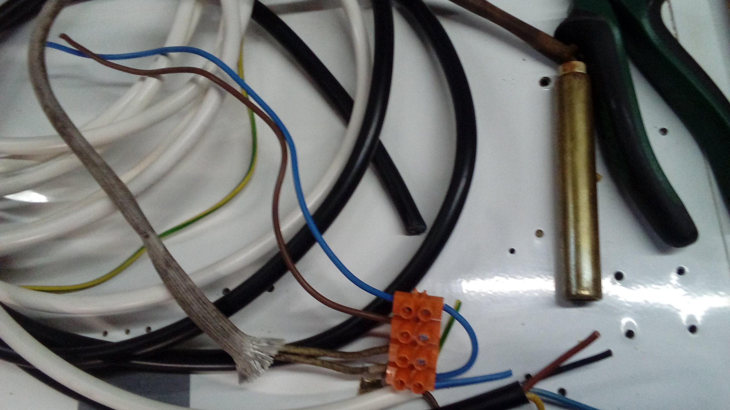 Grzałka ma dwa wyprowadzone przewody ( przewody nie mają oznaczeń, dlatego nie trzeba się martwić o bieguny, czyli niemożliwością jest pomylić się przy podpinaniu pod napięcie )