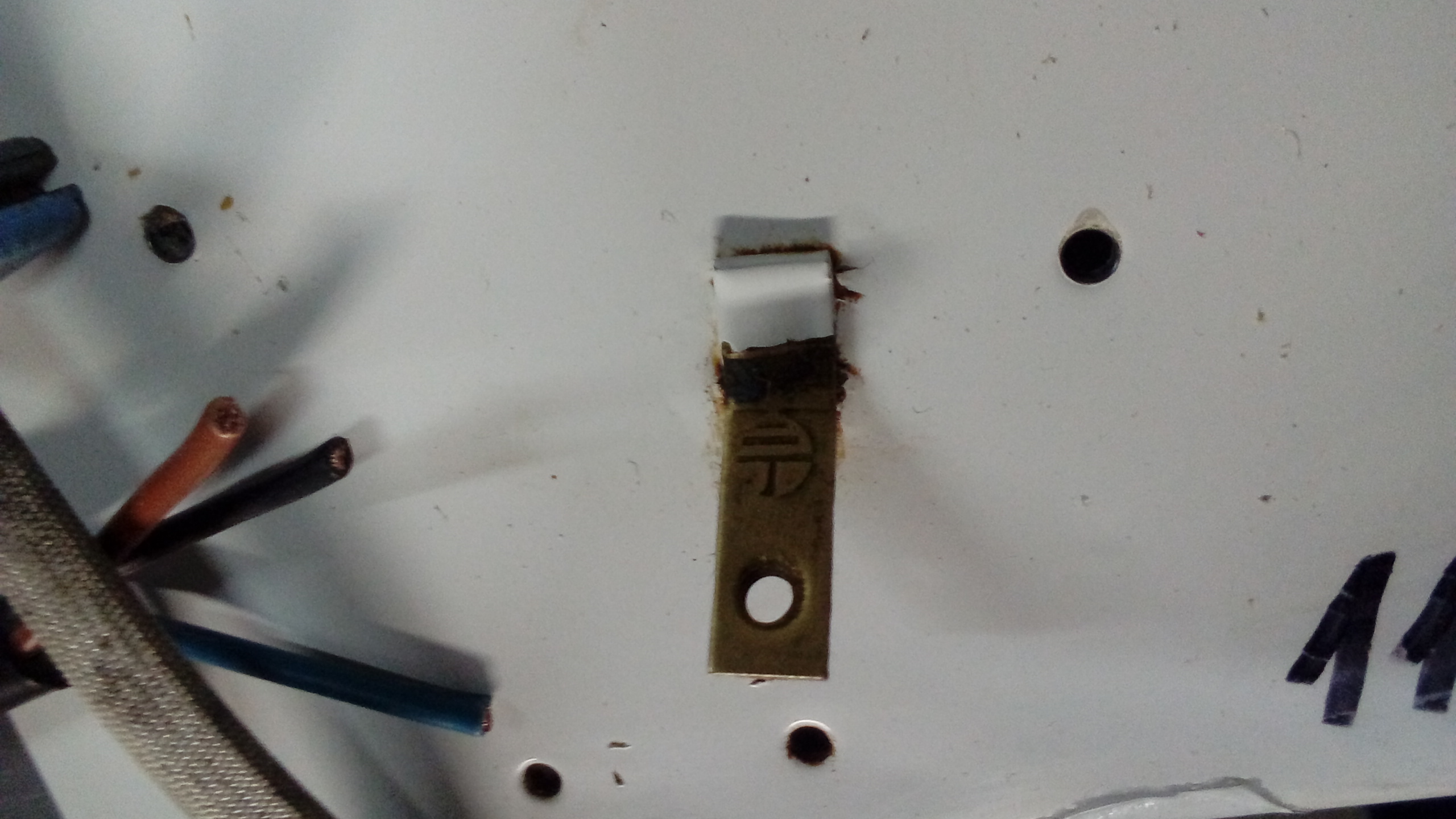 Mosiężna blaszka do której przykręcone jest uziemienie ( warto wyczyscić a nawet trzeba to zrobić )
