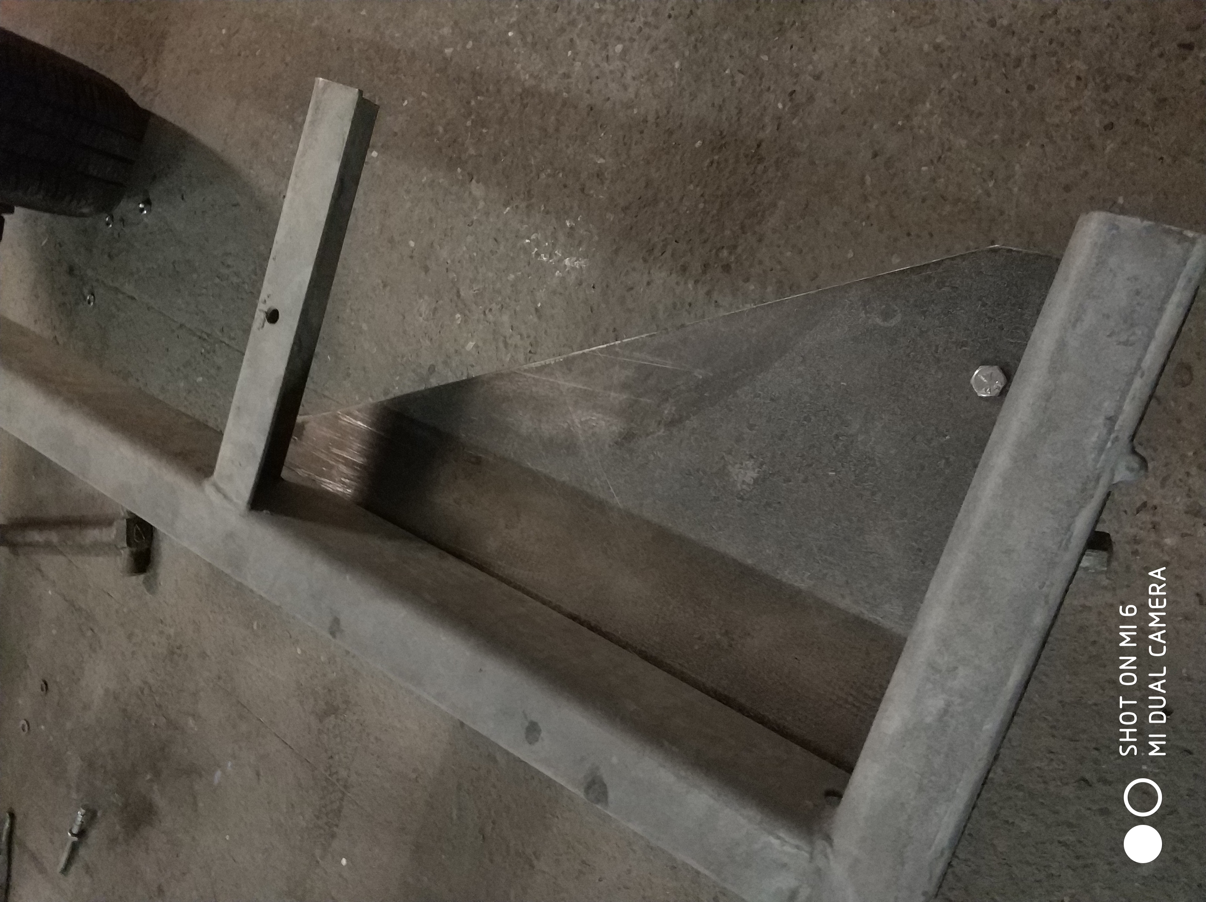 Blacha jest 4-5mm. Jest przykręcona do ramy 4 śrubami - 3 poprzecznie i jedna w osi. Podpora normalnie na 3 gdzie te 3 też trzymają "adaptery" ..