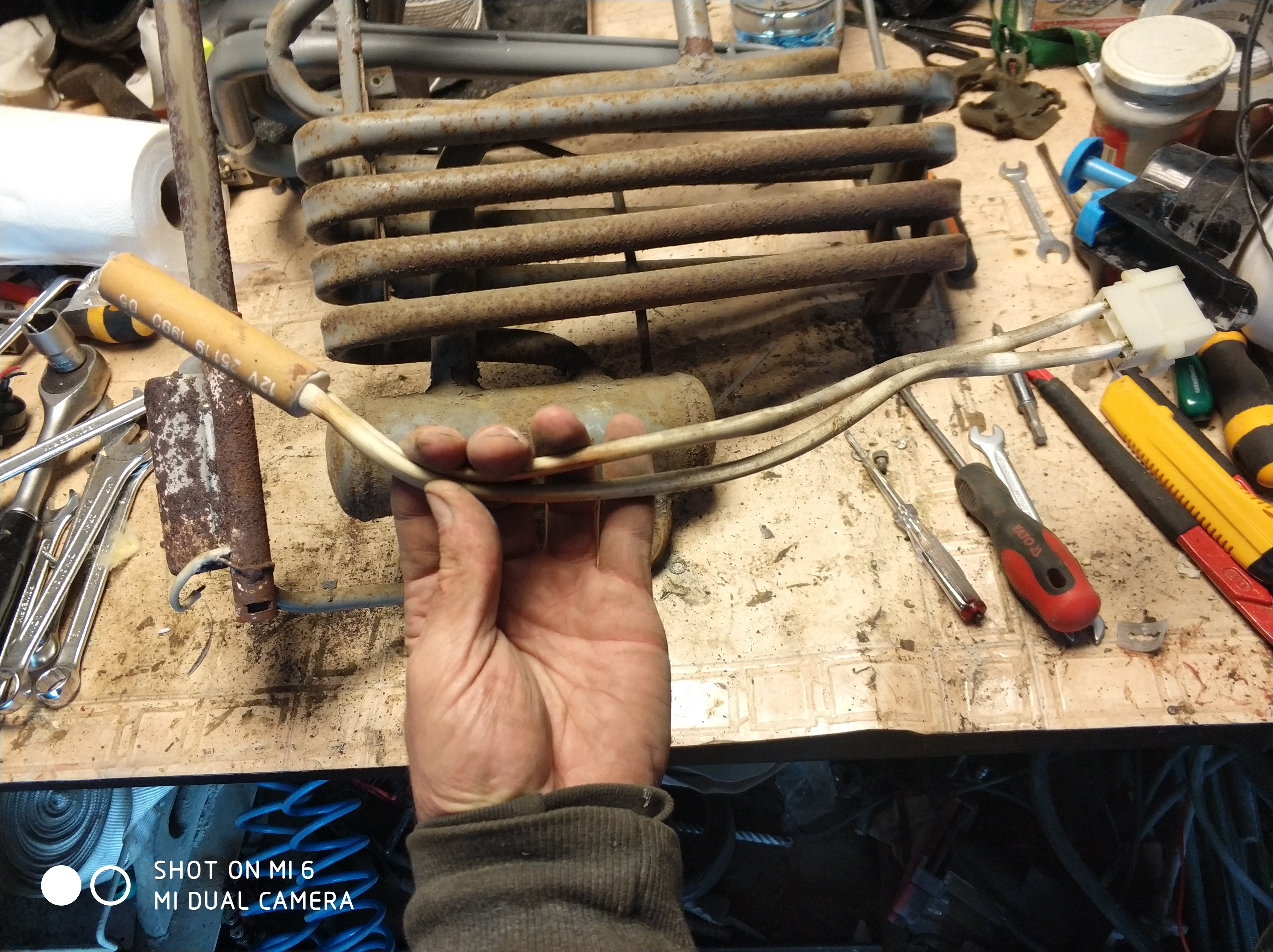 12V grzałka czuję też grzeje - jeszcze lepiej. No to stawiamy i odwracamy aby dostać się do palnika...