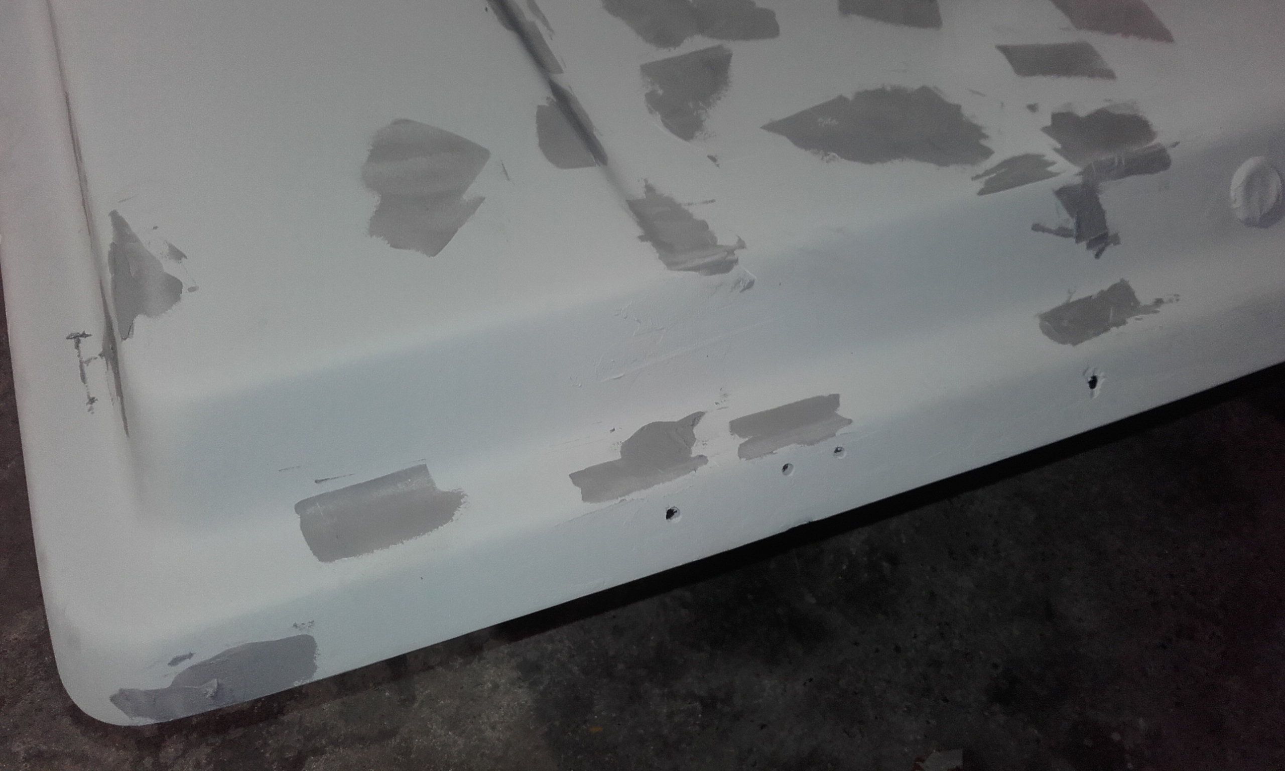 Remontu ciąg dalszy. Po pomalowaniu podkładem natryskowym, ukazało się niestety,że powierzchnia nie jest idealna.