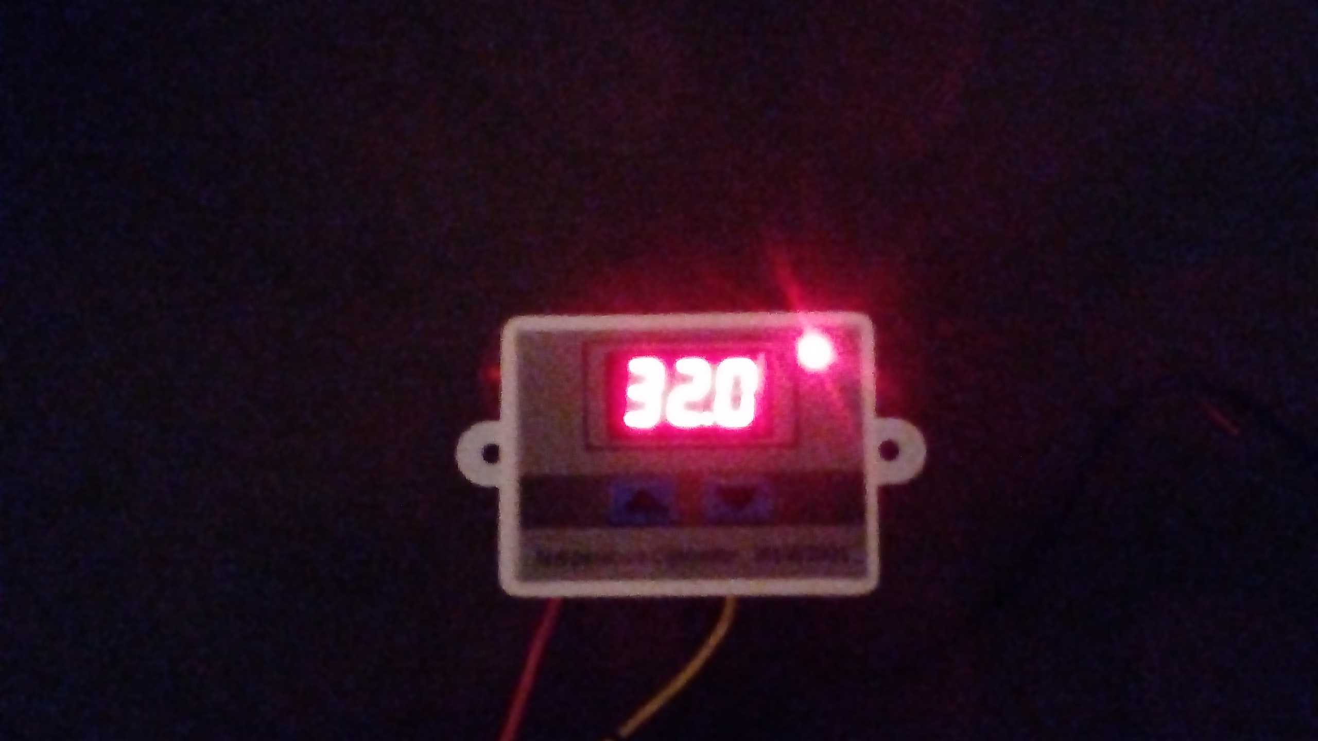 Próba ( ustawienie 32 stopnie i jak termometr uzyskał taką temperaturę, to zapaliła się czerwona lampka na urządzeniu i wiatrak ruszył
