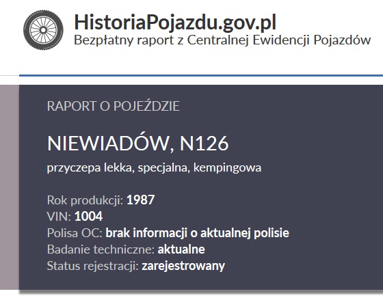 Czyli wpis powinien być moim zdaniem taki Rodzaj pojazdu - przyczepa lekka specjalna, przeznaczenie - kempingowa. Ja bym chciał mieć takie wpisy w dowodzie, a nie żadna lekka kempingowa czy inne. Doskonale jednak pamiętam, że moja N126N miała wpis taki sam jak mają obecne powyżej 750kg czyli przyczepa specjalna kempingowa i przegląd bezterminowy.