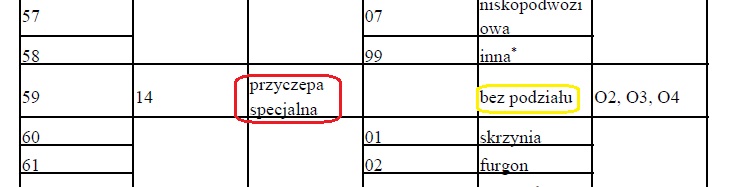 No i to się zgadza. Tylko, że w przypadku kategorii O2 nazwa "specjalna" nie jest już podrodzajem pojazdu a rodzajem. Tej kategorii nie dzielimy na podrodzaj, widnieje "bez podziału". Widać to w tabelce: