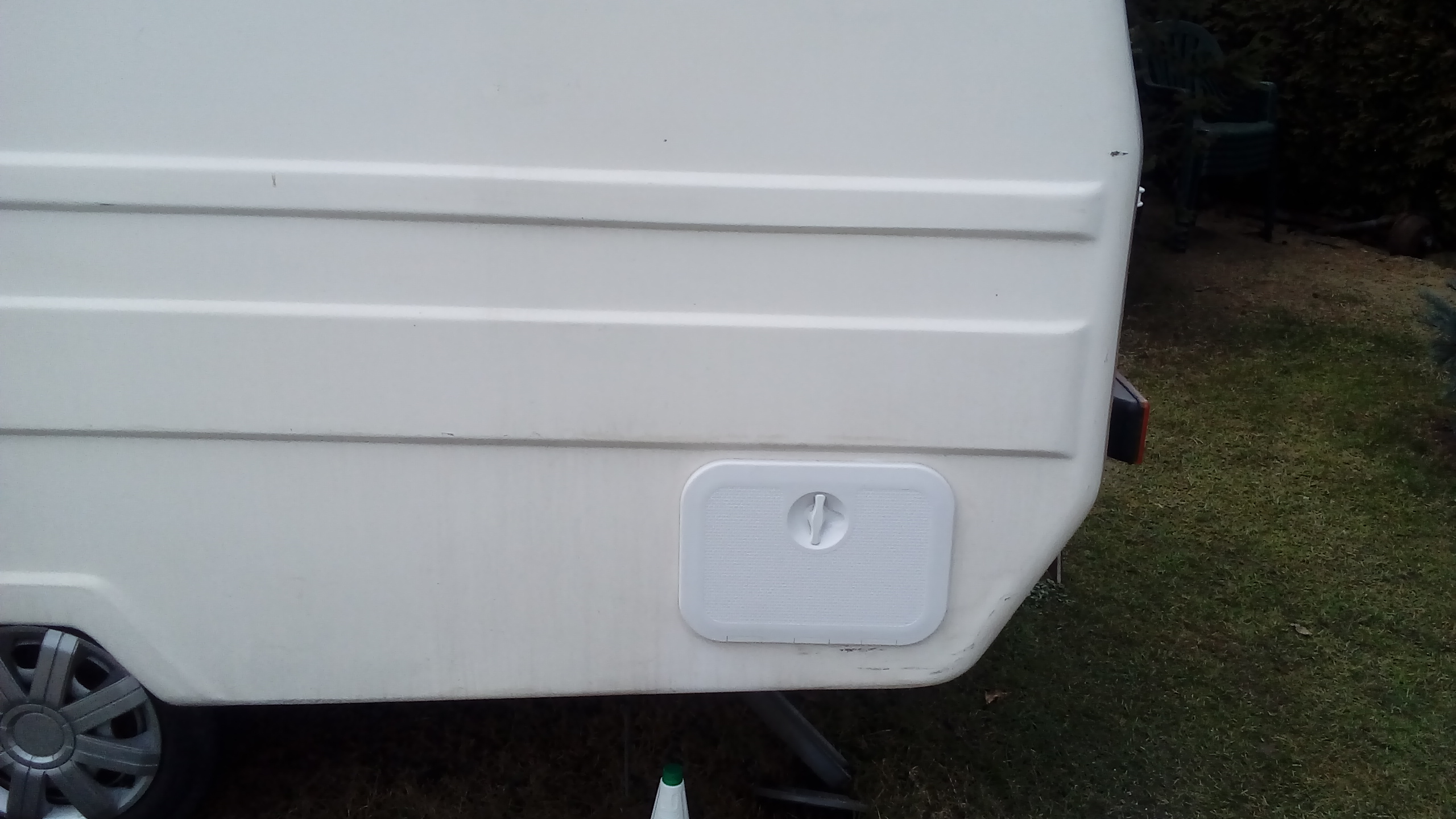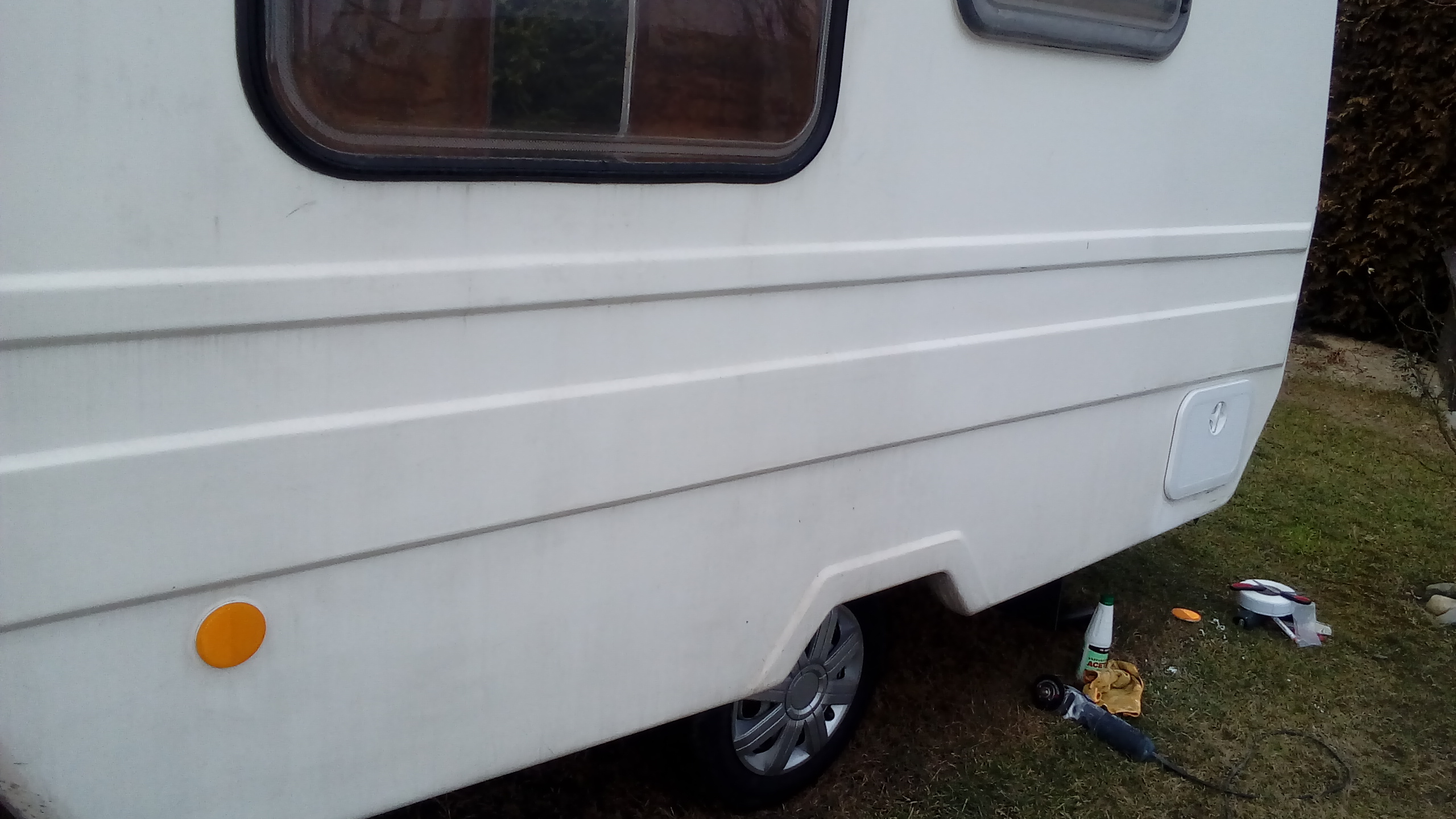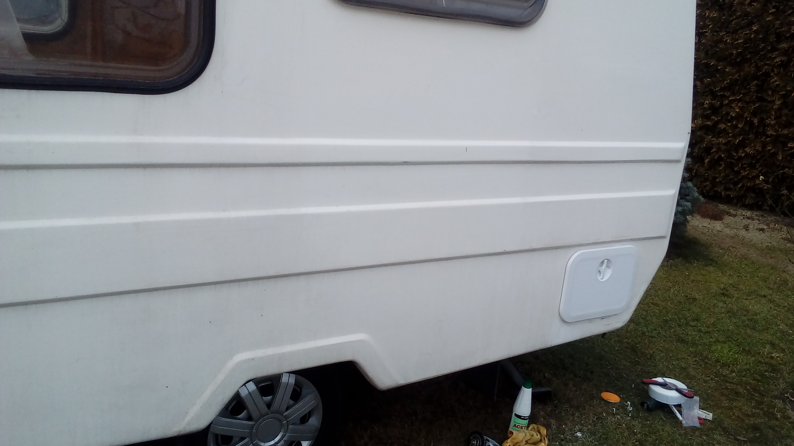 Czas pracy około 2 godziny. Wcześniej odrysowałem i wyciąłem szablon dla ułatwienia. Przyczepa strasznie brudna po tych śniegach, mrozach, deszczach itp Został montaż zamków, obcinanie śrub od środka i laminowanie nakrętek. Jeszcze trzeba zamontować odblaski, bo zostały zdjęte.