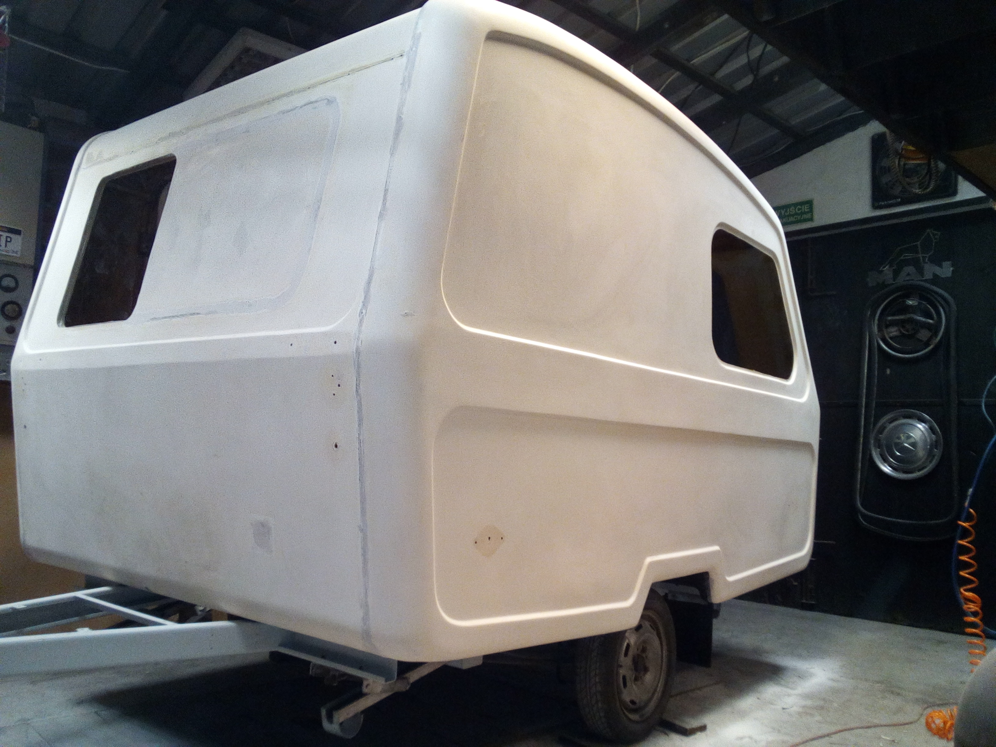 Też mam nadzieje że ogarnę zlocik. Byłoby ciekawie poznać zapaleńców o podobnym zboczeniu i zobaczyć Wasze Niewiadówki. Dzisiaj pomalowałem 2-gą warstwę - znowu minus 1litr (ostatni musi i jak widzę powinien) starczyć na daszek otwierany, bakistę i drzwi. Jak widać przód wyszedł tak jak przypuszczałem ....