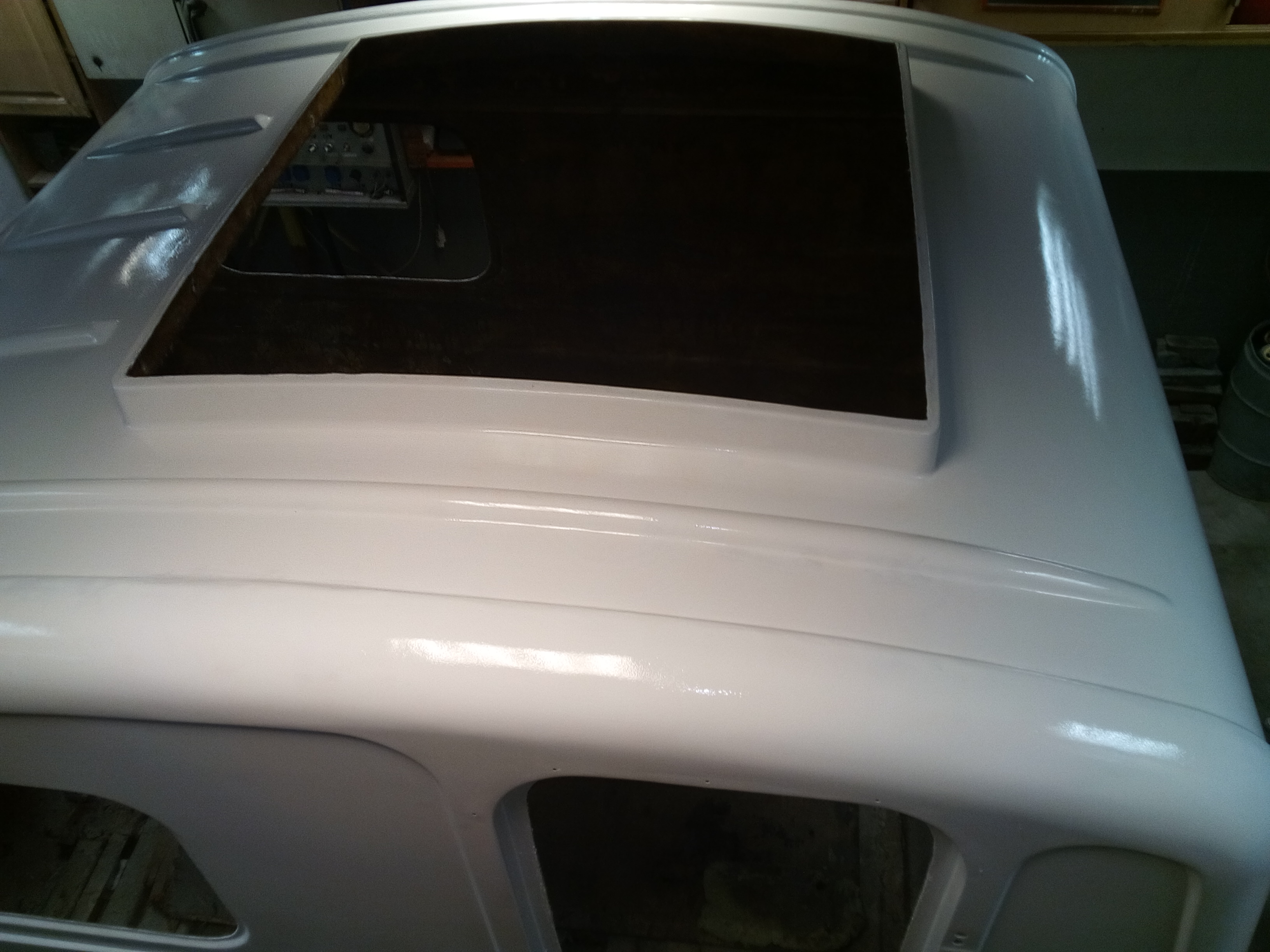 Użyłem farby fitmy Jotun. Na razie zużyłem na to co widać jeden litr. Malowałem wałkiem ,nie chciałem warsztatu zapylić, poza tym podczas malowania pistoletem coś czuje że miałbym więcej do polerki, jak by cały ten kurz jaki u mnie zalega zaczął szaleć, a potem osiadł na niej. A druga sprawa to wentylacja, mam tylko jeden wyciag . Widać na razie sporo niedociągnięć, ale zobaczymy po drugiej warstwie ,spolerowaniu i nałożeniu wosku co to będzie. Z efektu jak na razie ja jestem zadowolony w 60%