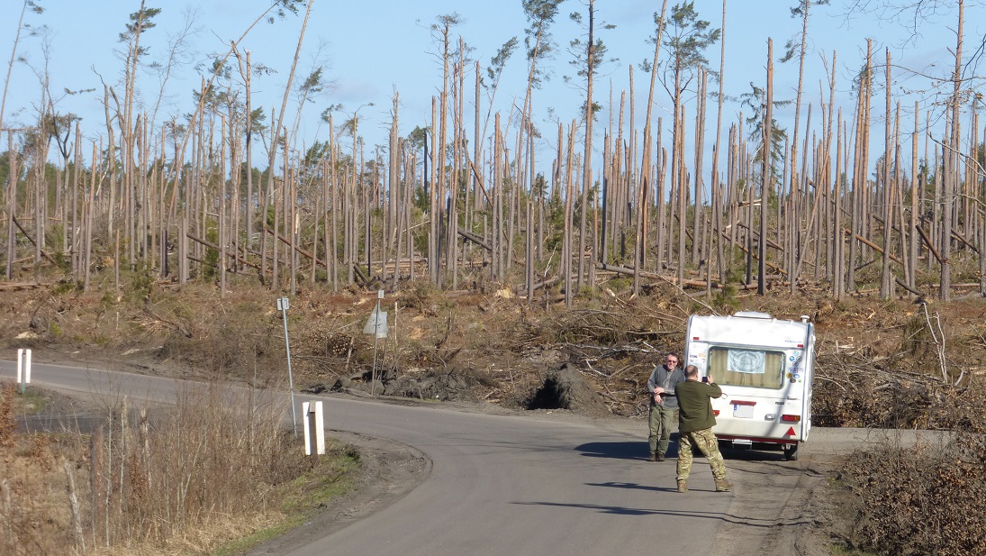 My mieliśmy okazję być w okolicy kilka dni po wichurze, to przejezdne jako-tako były wyłącznie główne drogi. Na bocznych ewentualnie slalom pomiędzy leżącymi drzewami, a z parkingów leśnych na nocleg nie było co nawet korzystać w obawie, że wiszące drzewa jednak za chwilę spadną...