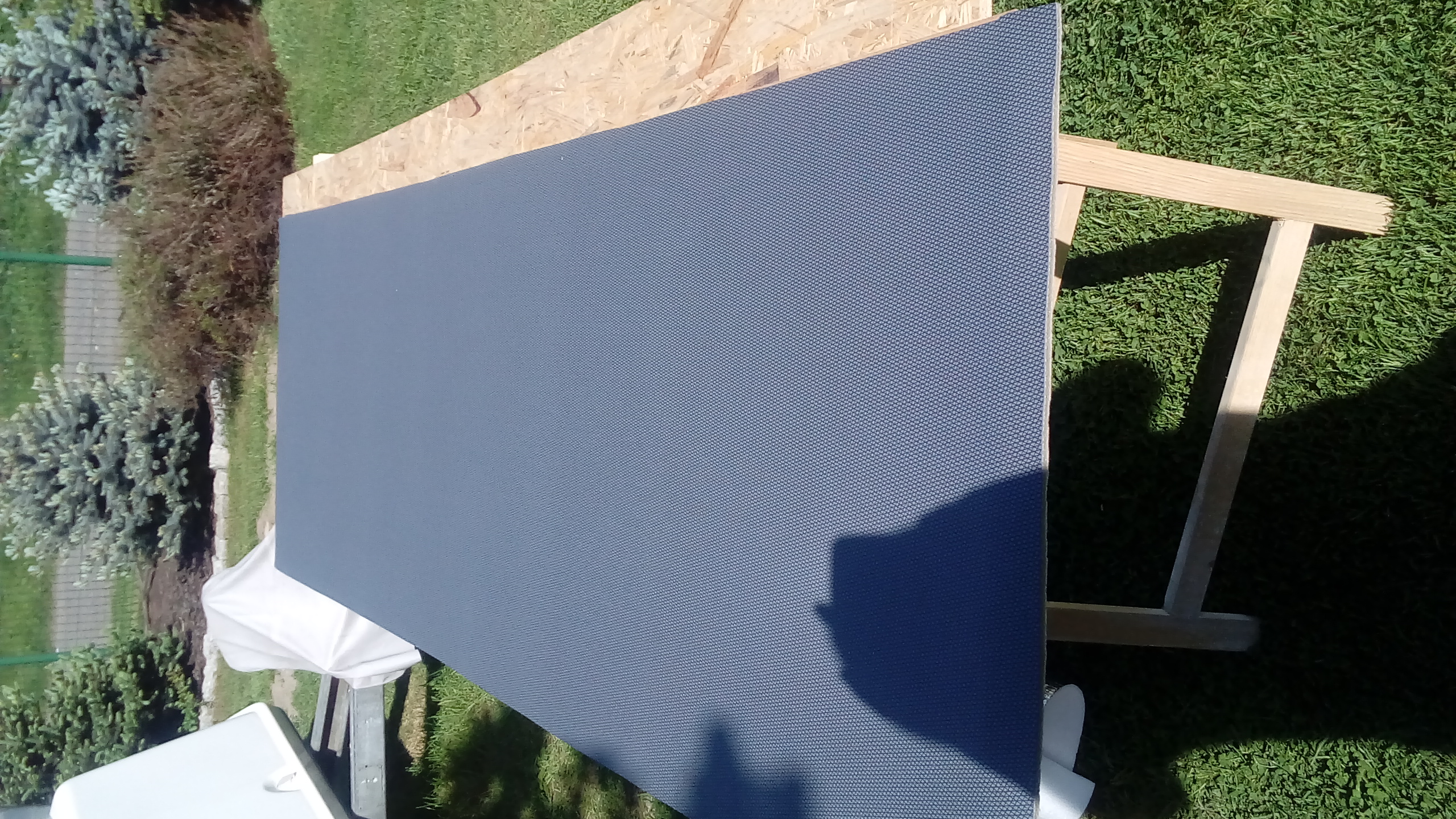 Dach miał być wyklejony sztuczną skórą ale zrezygnowałem z tego pomysłu i pójdzie materiał, nie chcę robić foliowego namiotu a materiał coś tam złapie zawsze wilgoci i odda, natomiast sztuczna skóra sprawić, że cała wilgoć popłynie po suficie jak po szybach