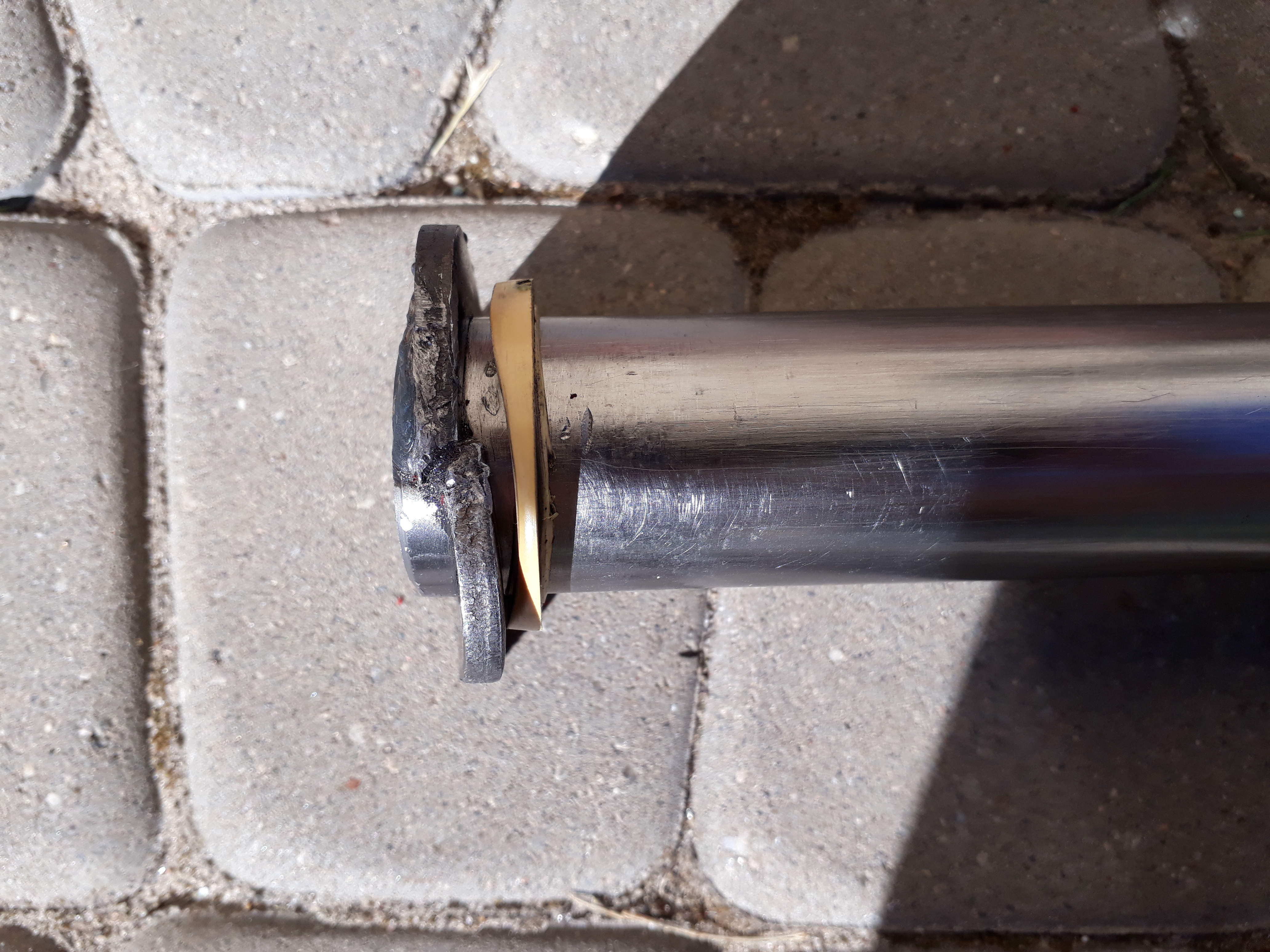 Po rozkręceniu i wyjęciu suwadła, na jego zakończeniu jest pęknięta, tylko w połowie przyspawana blacha, widać to na zdjęciach. Najprawdopodobniej tak było od nowości.