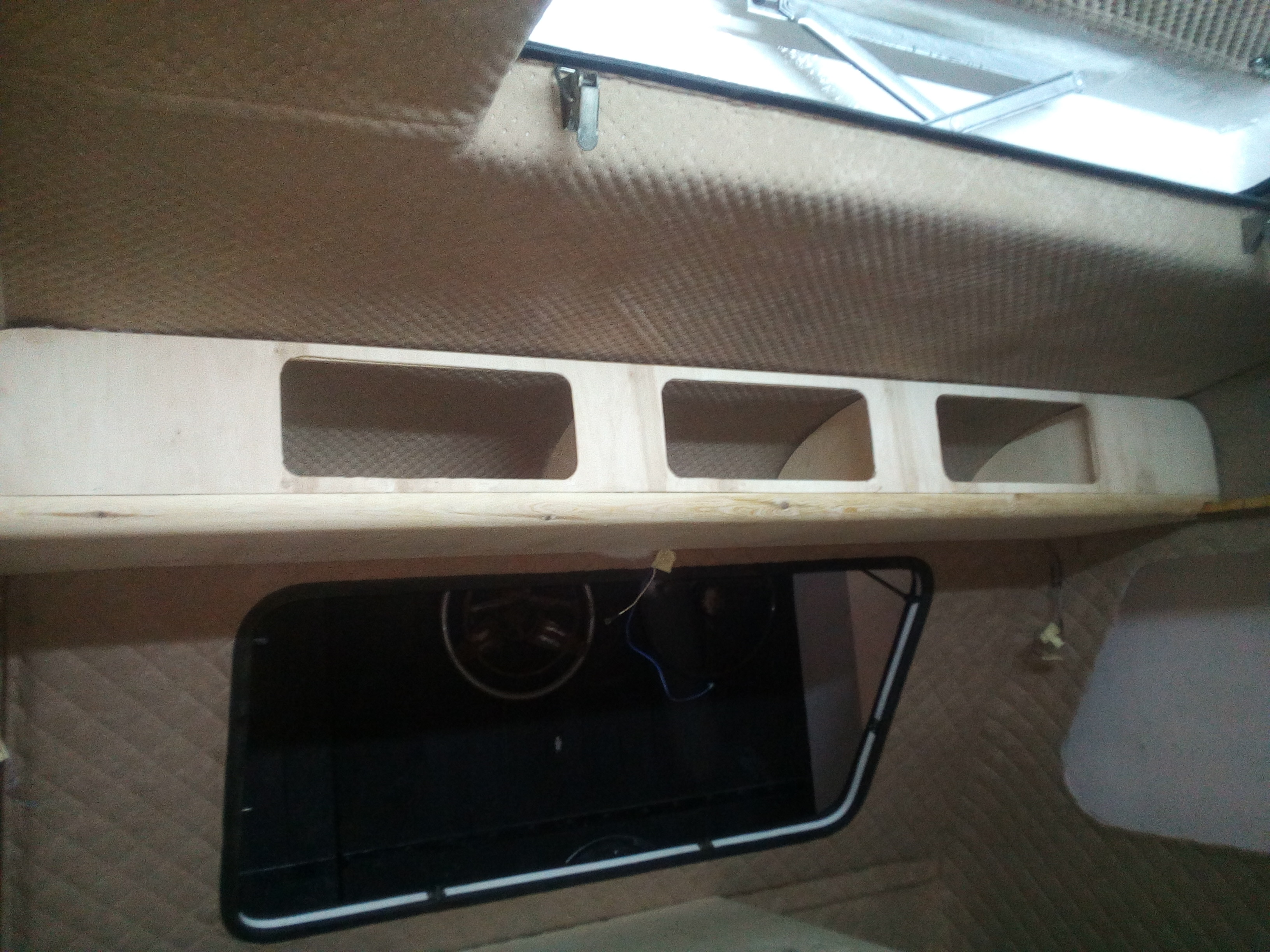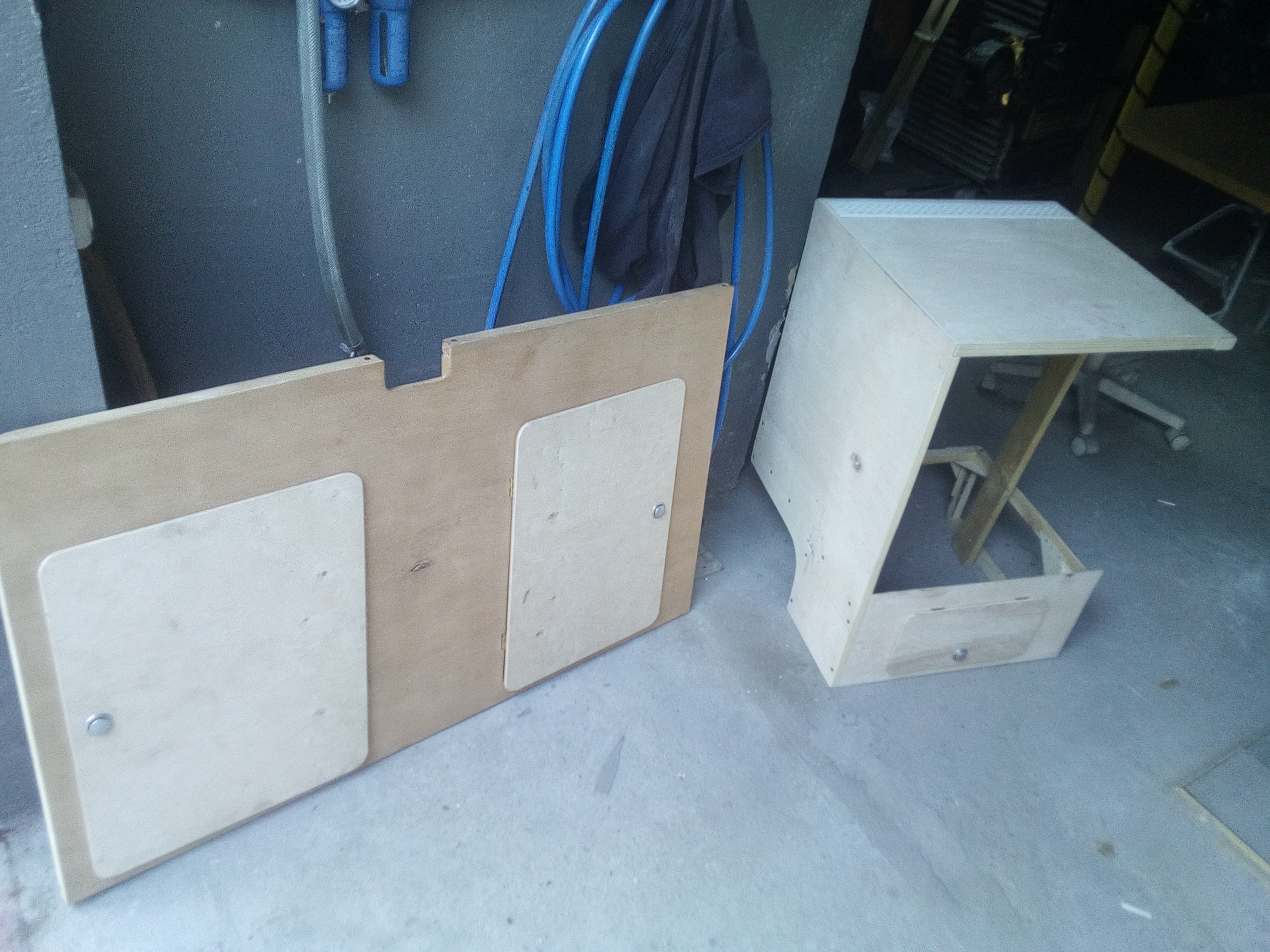 i produkcja szafki nad łóżkowej powoli ruszyła do przodu. Założyłem w końcu jakieś normalne koła (felgi oczywiście do malowania) i zaaplikowałem chrom old school vintage, czy jak kto woli loft kołpaki z garbuska. Wiem mało polskie, ale oś VW w sumie jest...
