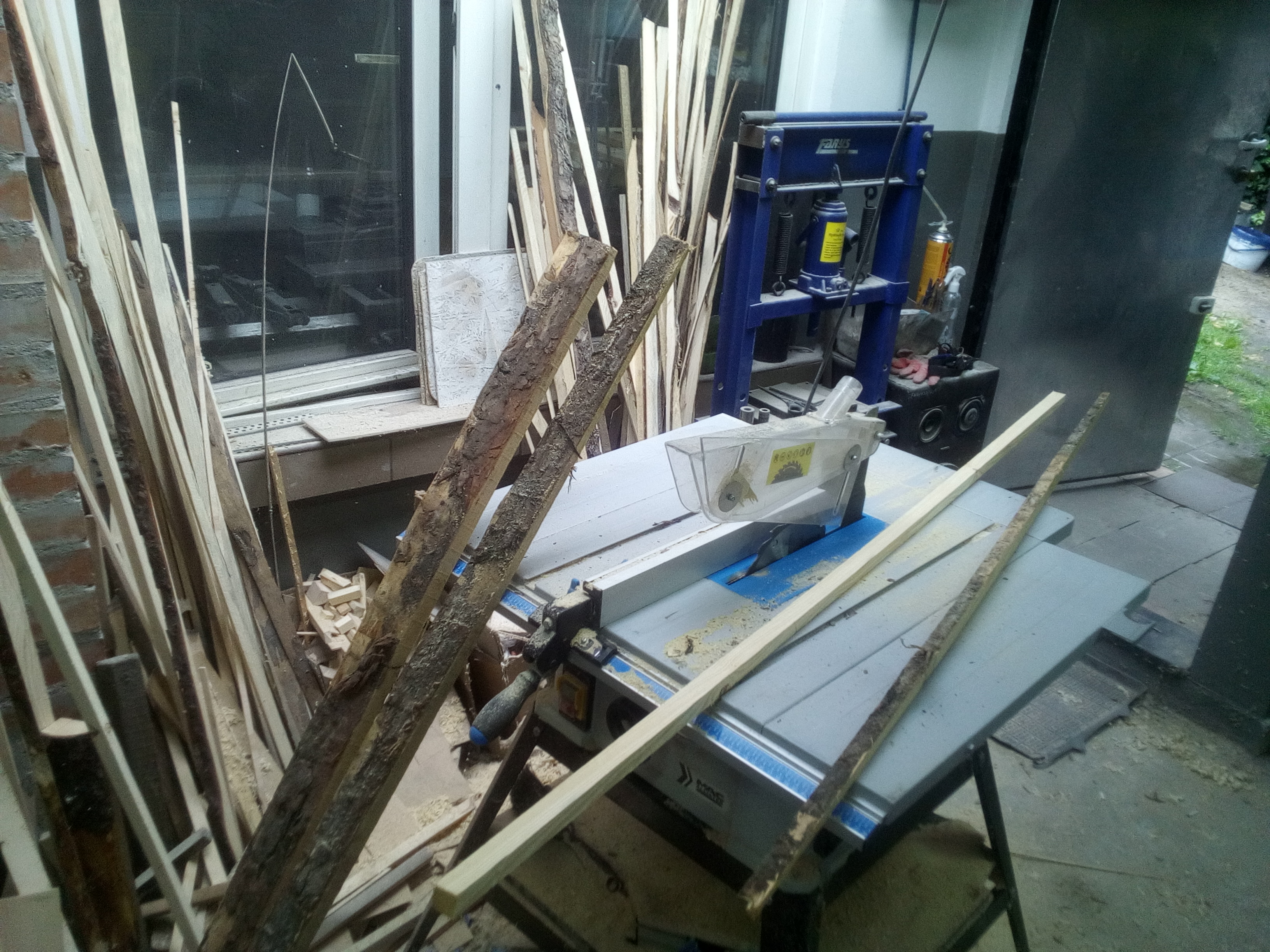 przepraszam post pod postem ale zdjęcia... które przedstawiają jak to jest zrobione, questions and answer czyli jak to moi koledzy kiedy do mnie przyjdą mówią Filip długo się jeszcze będziesz z tym kempingiem pie...ć ??? kupujemy odpady z tartaku(obladry) suszymy je jakiś rok albo i więcej.fot. 1 tniemy na beleczki kantóweczki itp w zależności od potrzeb. Fot. 2 wyrównujemy heblujemy. Fot .4 ręcznym hebelkiem nadajemy kształt. Fot. 5 szlifujemy. Fot. 6 i 7 sklejamy pokazane na przykładzie drzwi od klopa