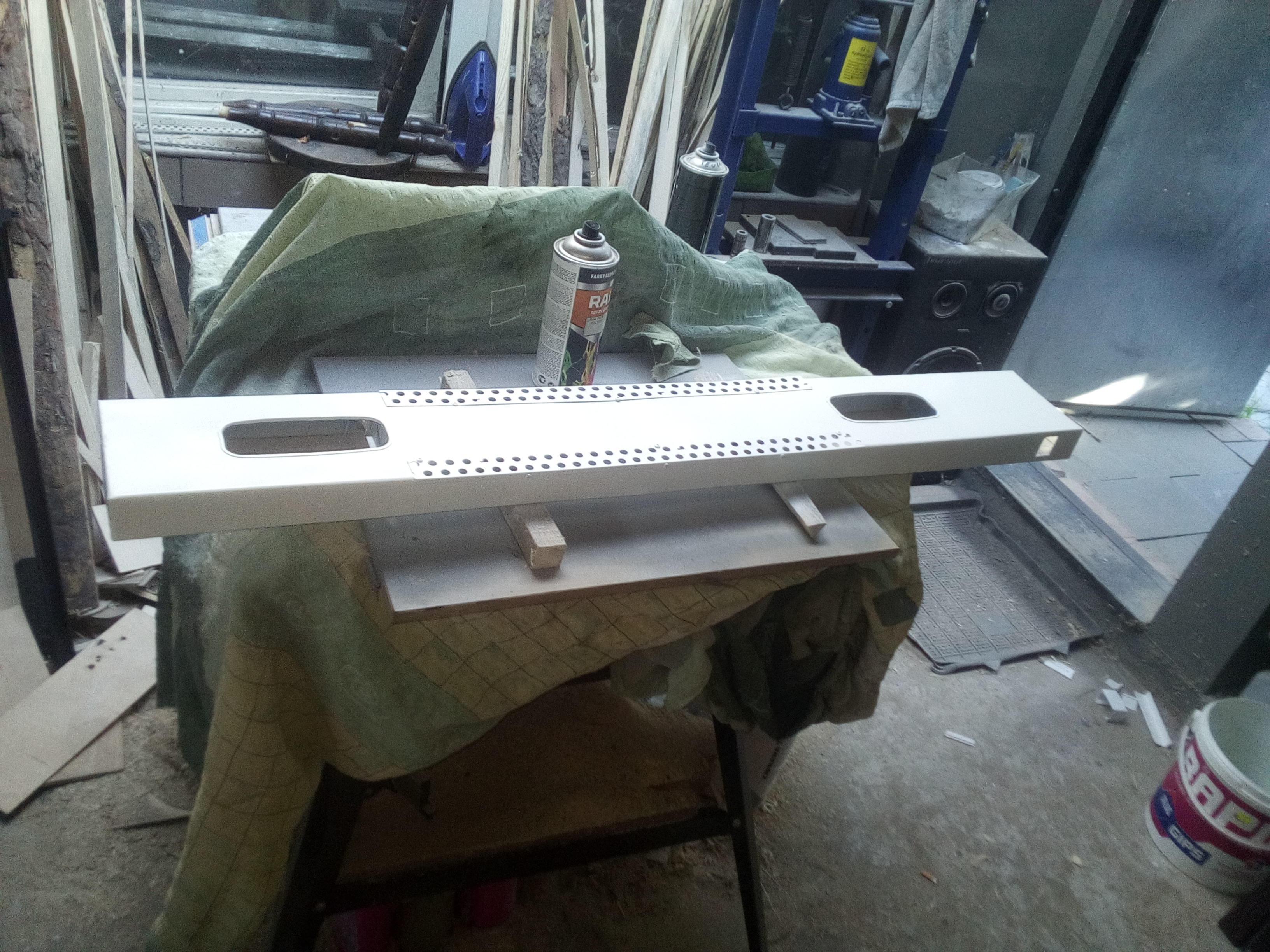 Fot. 8 szpachlujemy i szlifujemy. Fot. 9 barwimy na żądany kolor. Fot. 10 lakierujemy min 4 warstwy oczywiście pomiędzy warstwami szlifujemy odpylamy. Fot. 11 i mój ulubiony etap montujemy
