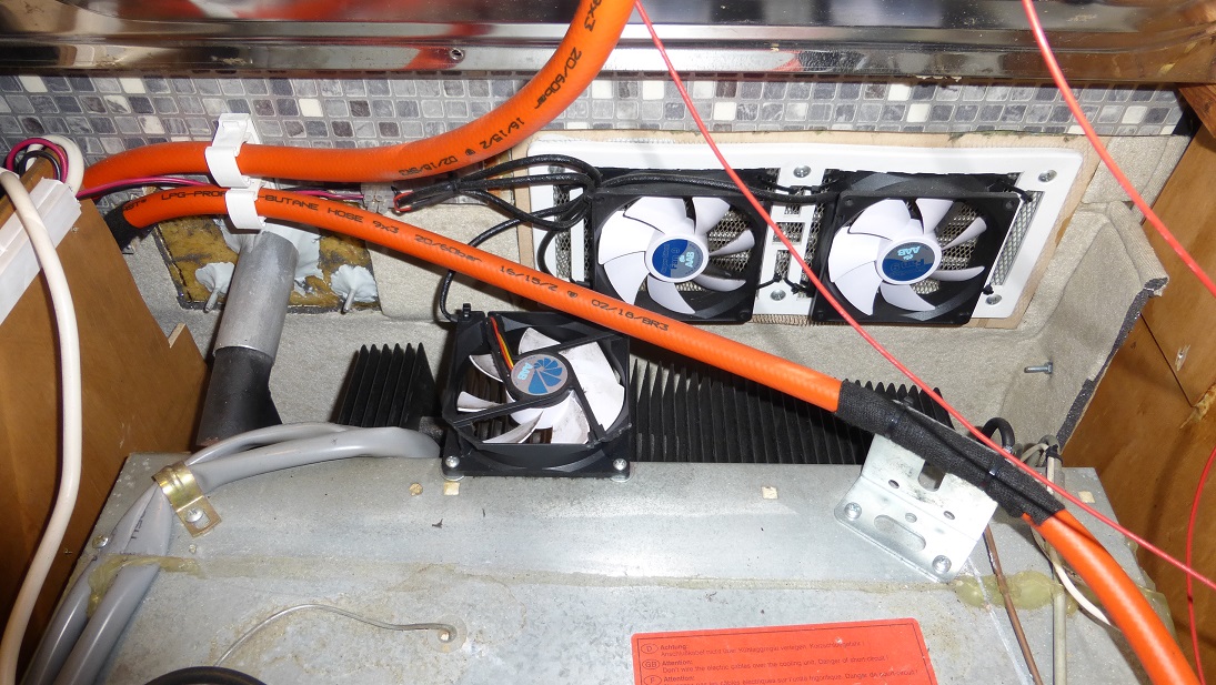Do montażu bakisty musiałem wyjąć lodówkę więc przy okazji pstryknąłem fotkę wentylatorków które dbają o sprawność chłodziarki.