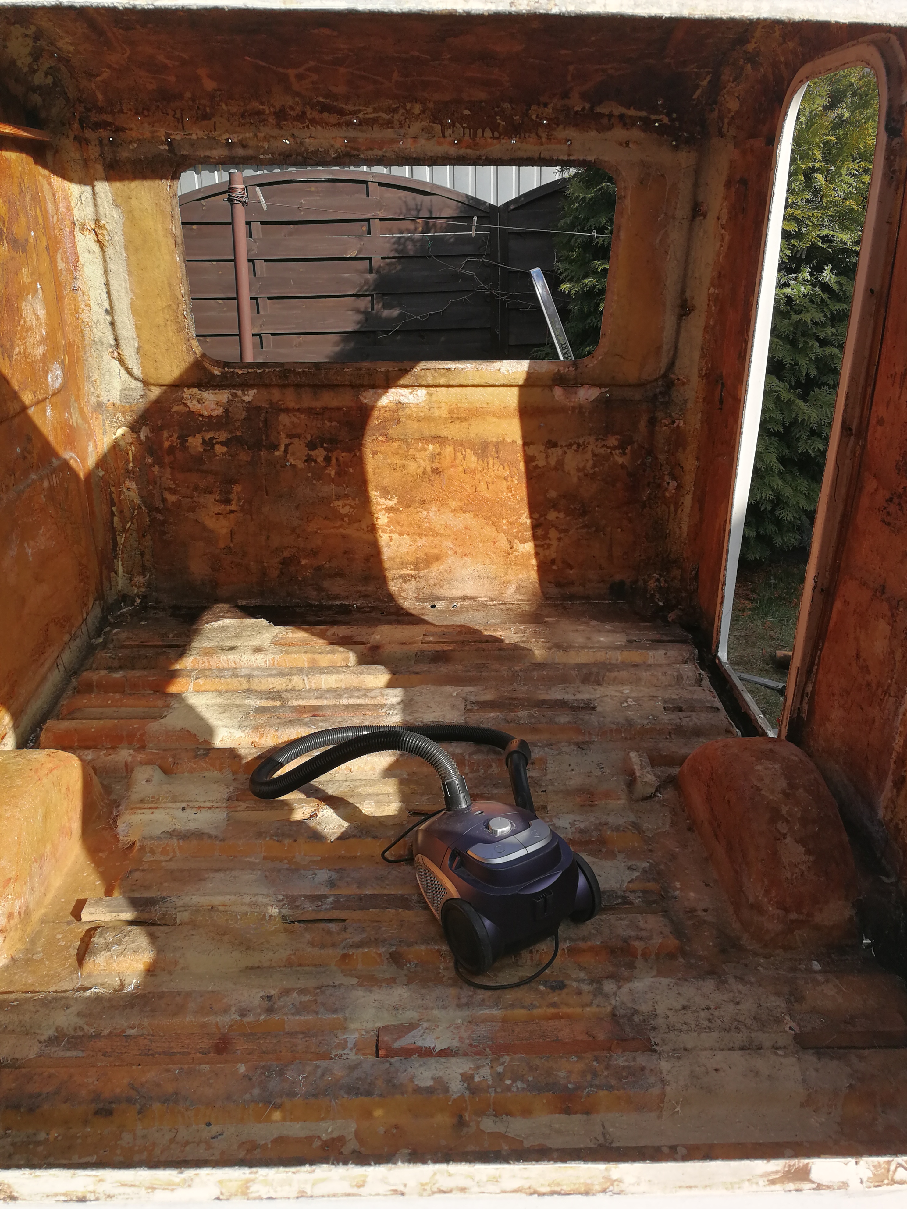 Rama jest w jednym kawałku ale zostanie wzmocniona, oczyszczona, pokryta app r stop. Następnie podkład, farba właściwa, oraz podkład do konserwacji podwozia Boll. Buda od spodu zostanie wymyta, ubytki wzmocnione mata/szpachla zielona z włóknem. Dodatkowo masa uszczelniająca na łączenia i na to farba biały chlorokauczuk. Jakoś powoli idzie wszystko do przodu