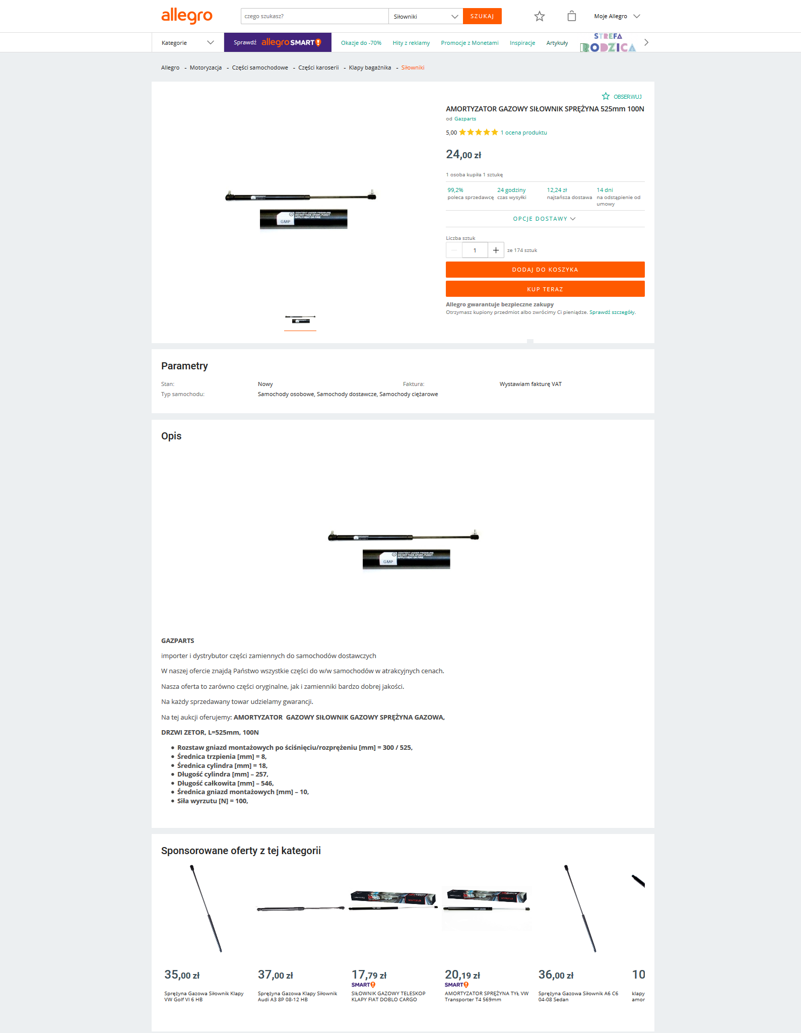 Co do ceny to ten co podajesz jest pewnie drogi bo jest "specjalnie do boxów". Ja natomiast kupiłem inny niż był zamontowany oryginalnie - bo oryginalnych nie mogłem dostać. Kupiłem zatem dwa siłowniki oo drzwi traktora zetora ;-). Siła taka sama jak oryginalne (100N) ale dłuższe. Jeden kosztował ze 25 zł o ile pamiętam.