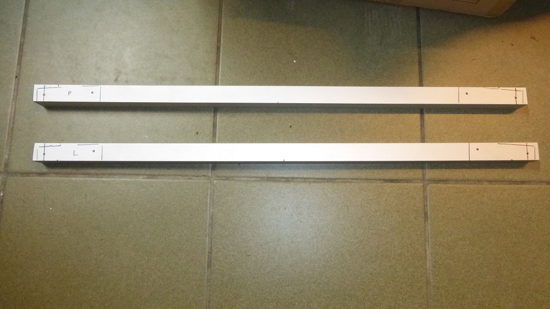 Zastosowałem dość duże kątowniki aby powierzchnia nacisku na budę była jak największa bo panel swoje waży. Kątowniki takie same jak dawałem w wielorybie, bardzo mocne i z usztywniającym tłoczeniem, nie tylko zagięte o 90°. Są symetryczne więc trzeba było je ciachnąć.