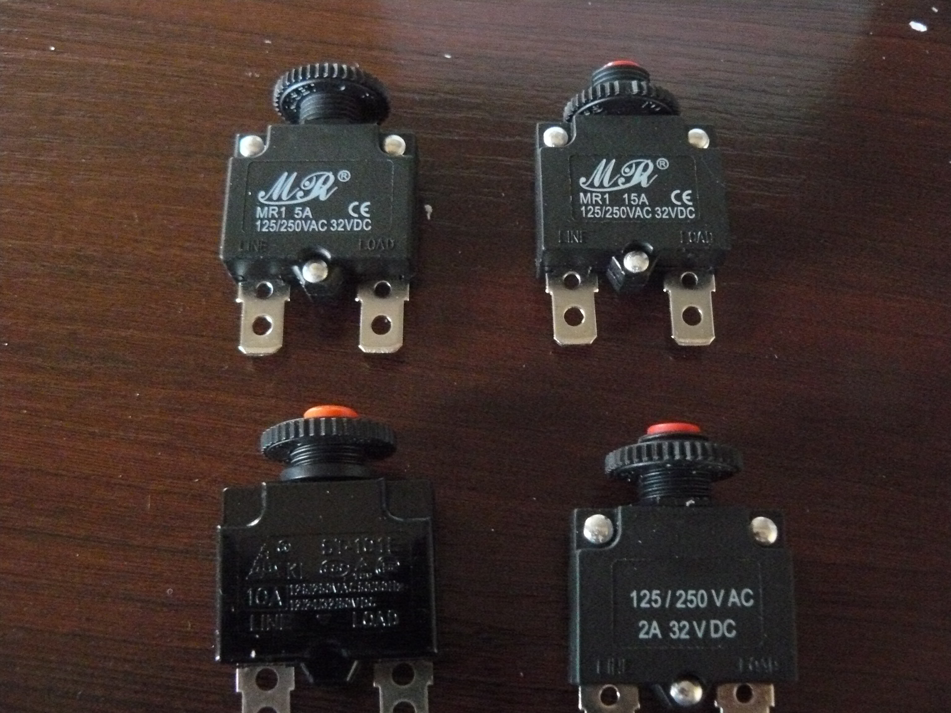 Bezpieczniki automatyczne do 32VDC, w tym projekcie 2A, 5A, 10A i 15A - oczywiście są też na inne wartości prądów ale te w przyczepach wydają się wystarczające do zabezpieczenia konkretnych obwodów.