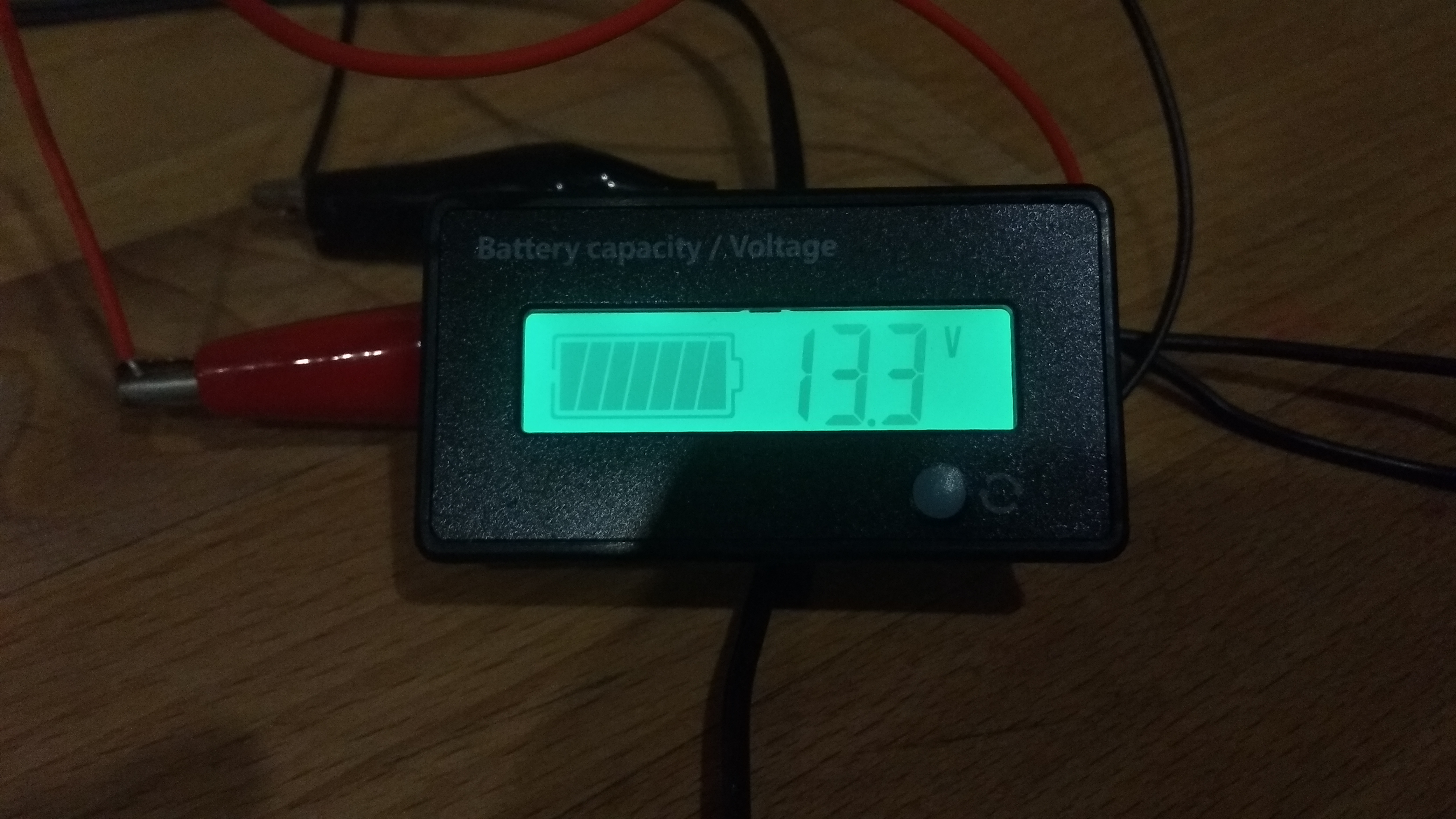Odebrałem też paczuszkę od majfrendów z fajnym voltomierzem. Co prawda mój pwm ma voltomierz i wskaźnik naładowania aku, ale jest pod łóżkiem i zaglądanie do niego jest upierdliwe więc ten zamontuję gdzieś w widocznym miejscu.