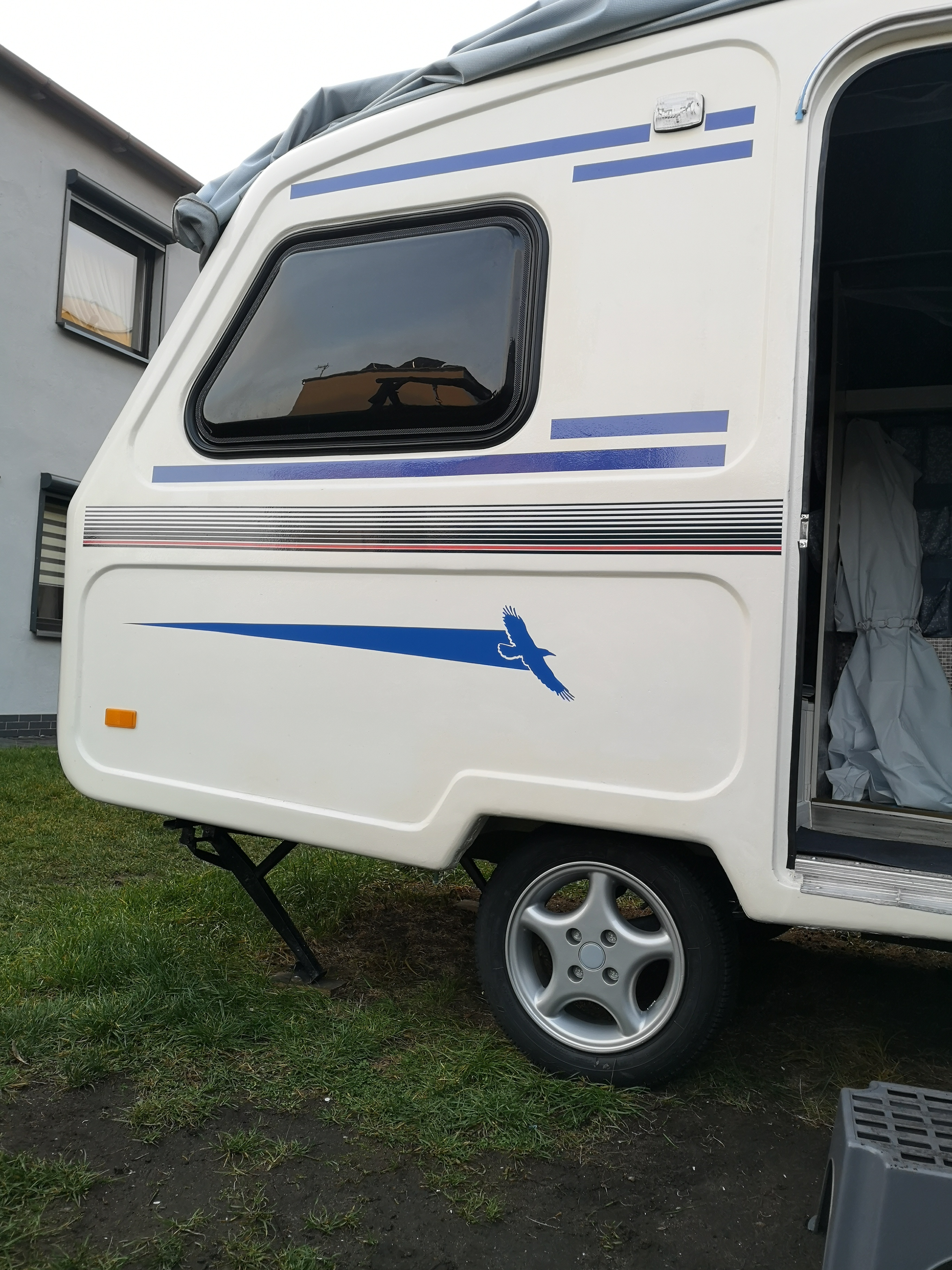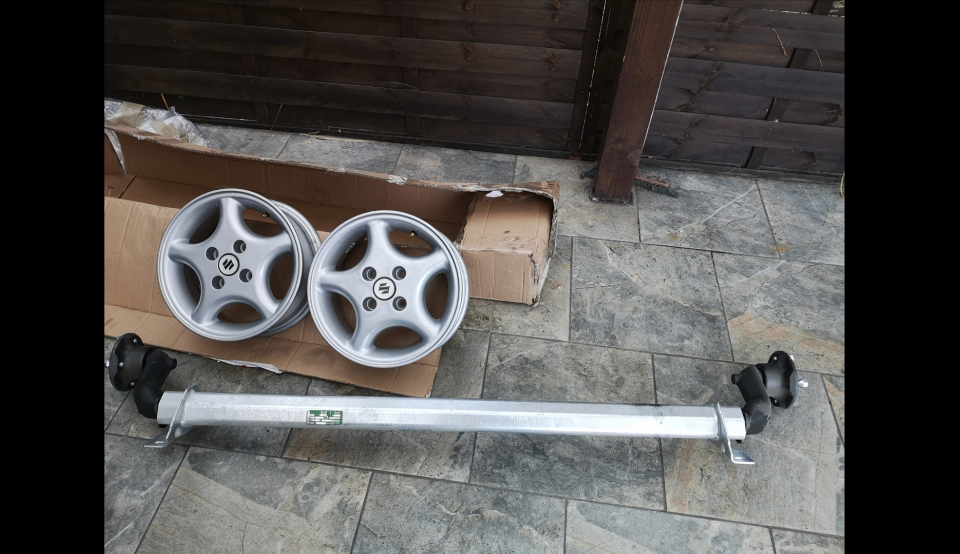 Wybór padł na al-ko oś (750kg), alufelgi 13 4x100 et29 oraz oponki Dębica Passio 2 145x70R13.