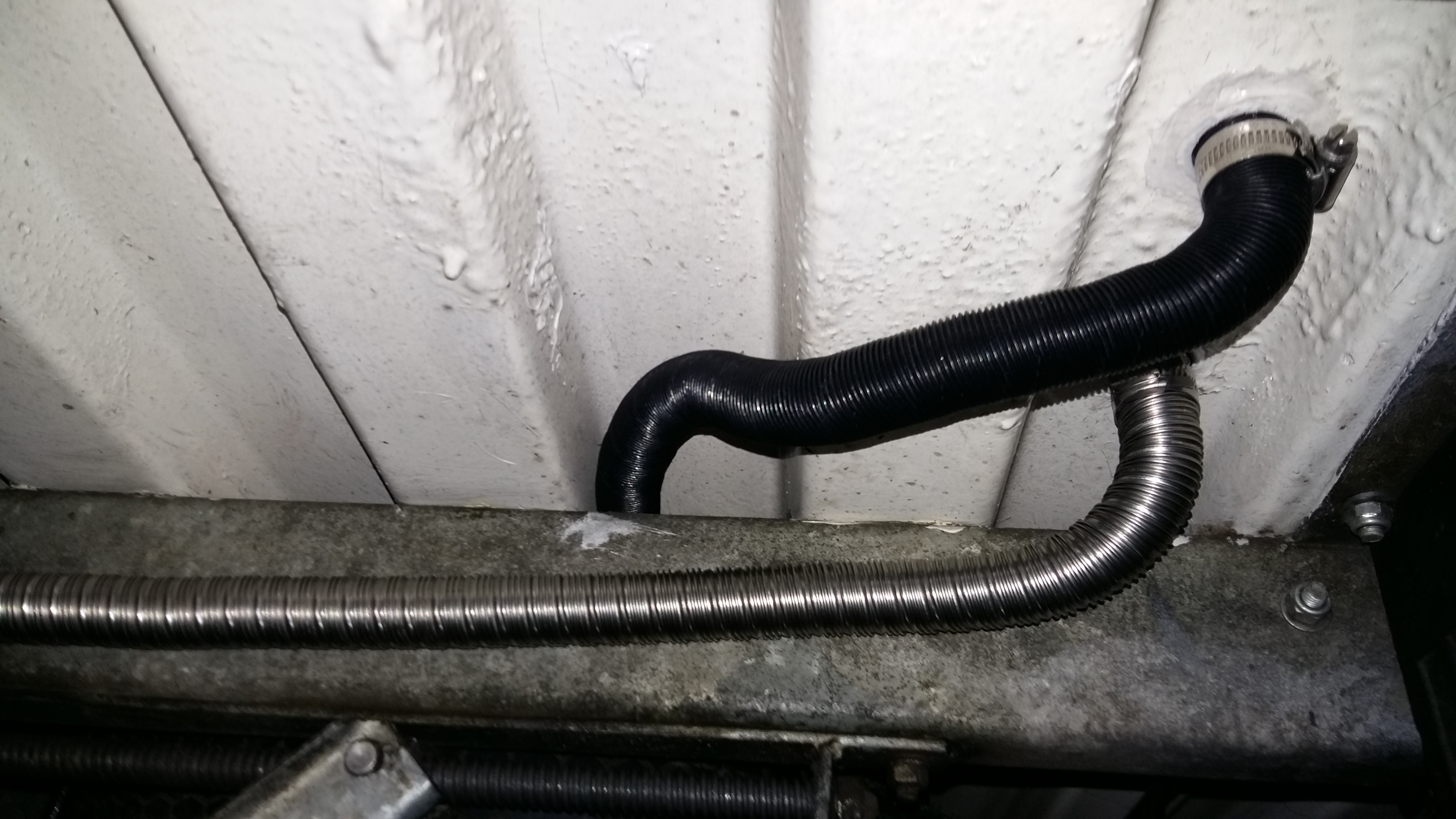Rurę ssącą poprowadziłem wzdłuż wręgu z wylotem pod podłogą.