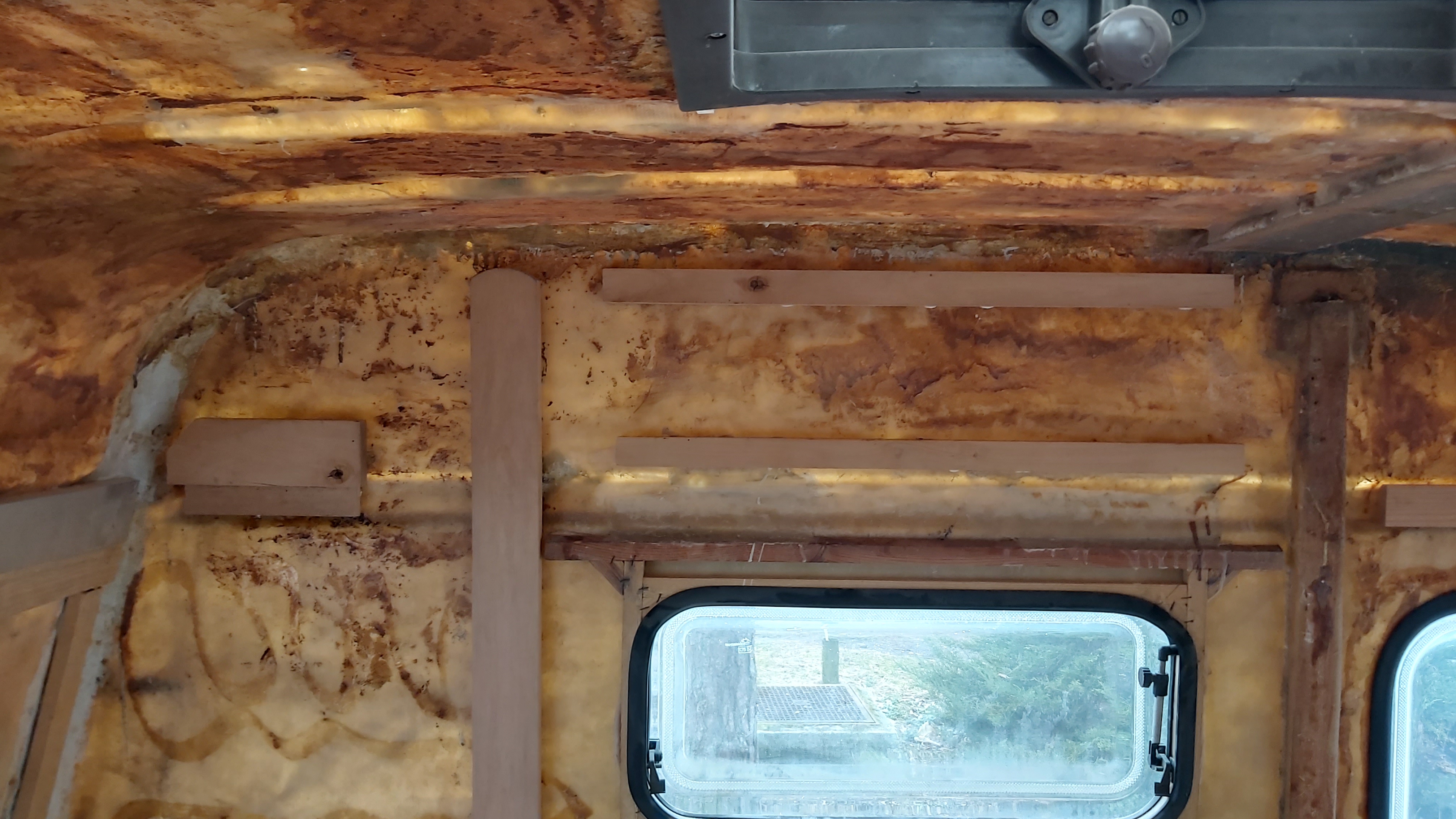 Narazie ze względu na pogodę mogę zrobić laminowanie od środka, częściowo ocieplenia i szlifowanie z zewnątrz tego co zaczął poprzedni właściciel.