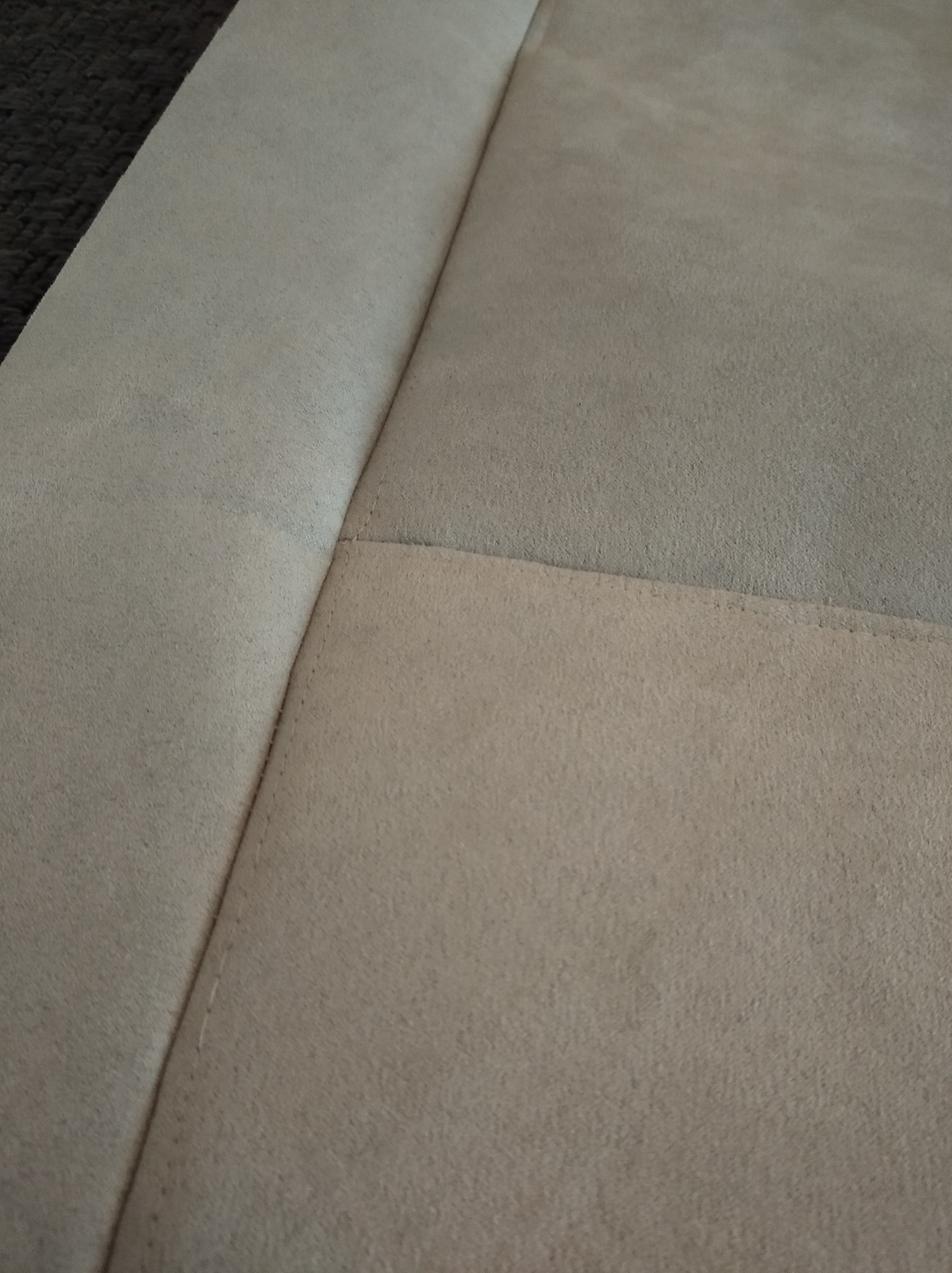 Materiał to sztuczna alcantara, kolor jasny szaro-beżowy.