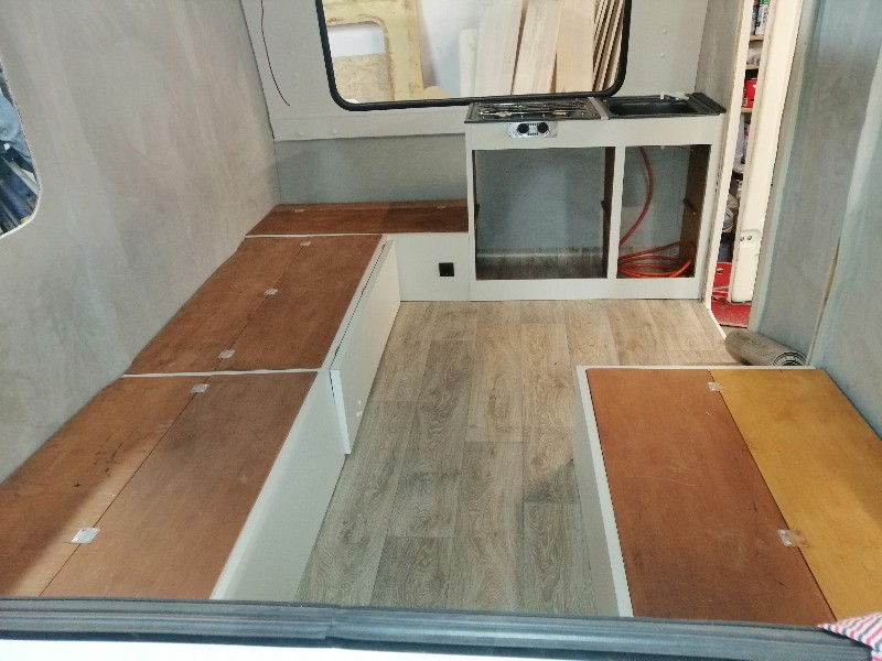 To jest fajny etap, gdy zaczyna przybywać elementów wnętrza i z dnia na dzień przyczepa szybko nabiera wyglądu :)