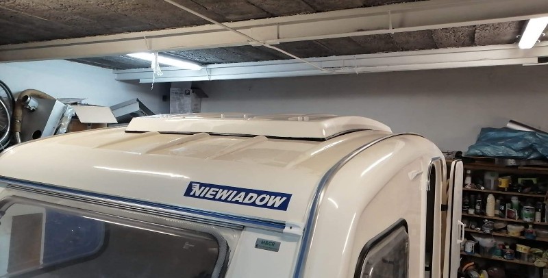 Po zamontowaniu mebli zdecydowałem, że muszę doszyć jeszcze wałki z alcantara aby wypełnić szczelinę pomiędzy pawlaczami a dachem. Taki "patent" stosuje fabryka w nowych przyczepach aby zamaskować peerelowską jakość i spasowanie mebli