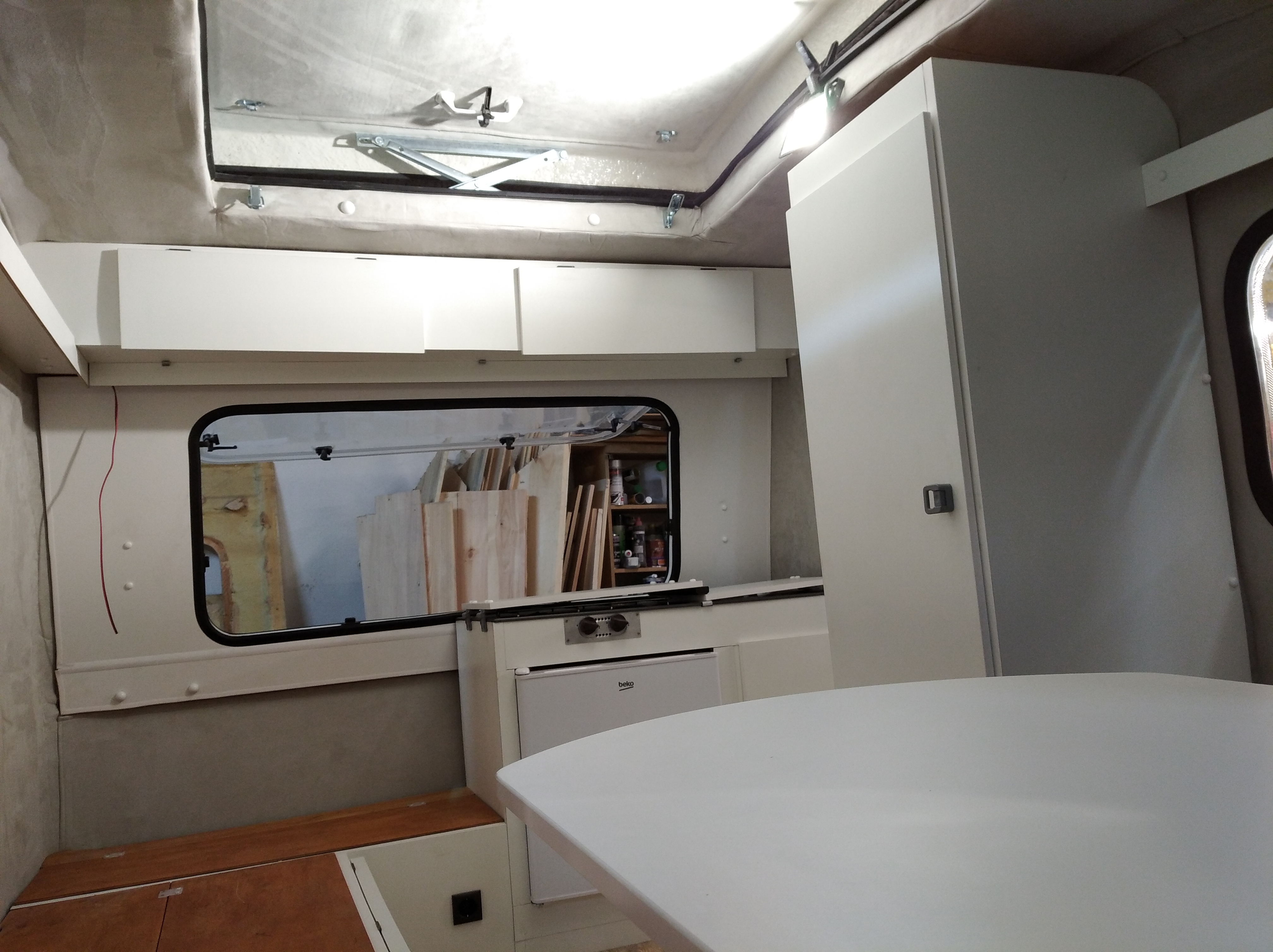 Prace są na takim etapie, że zostało tylko oś i najazd poskładać. Tapicer szyje poduchy, zasłonki gotowe, firanki w tym tygodniu ogarnę.