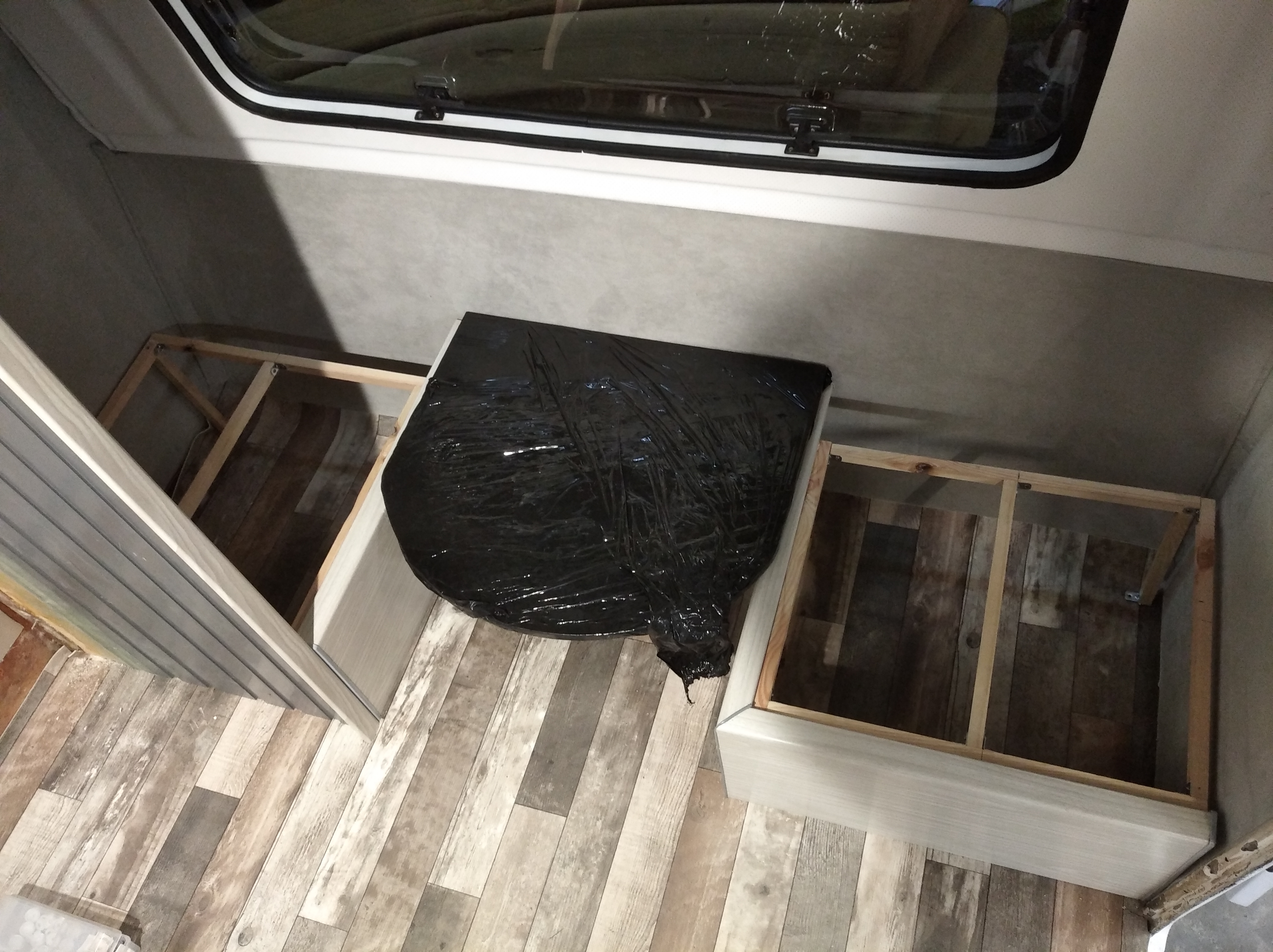 Na tyle i przodzie przyczepy będą jeszcze małe schowki (bardziej tunele techniczne) spinające bakisty i umożliwiające przeprowadzenie rur od venta. Kabli tam nie będzie bo mam spory zapas wpuszczony pod podłogą pomiędzy nadkolami także coś lekkiego będzie można pakować do schowków.