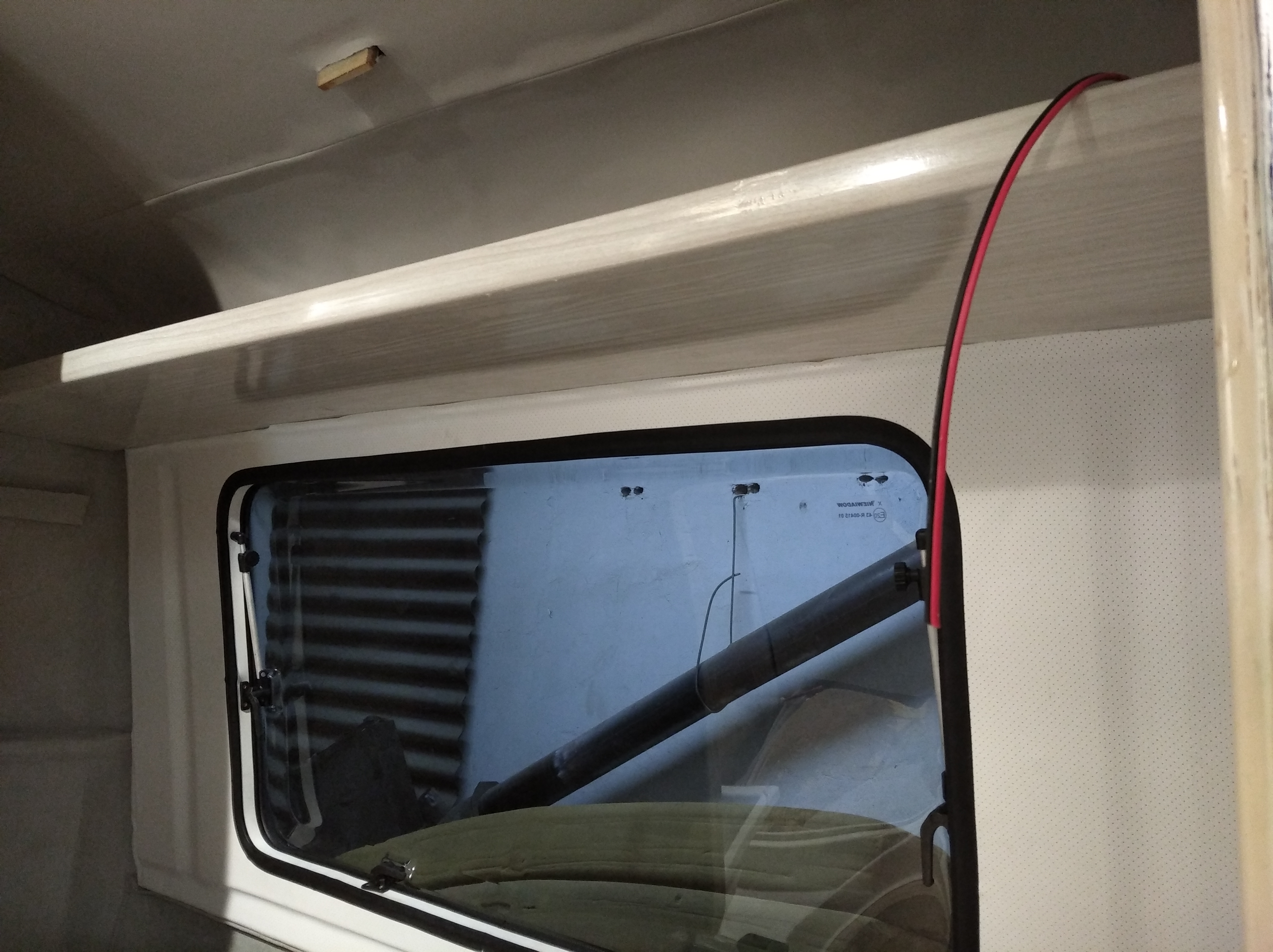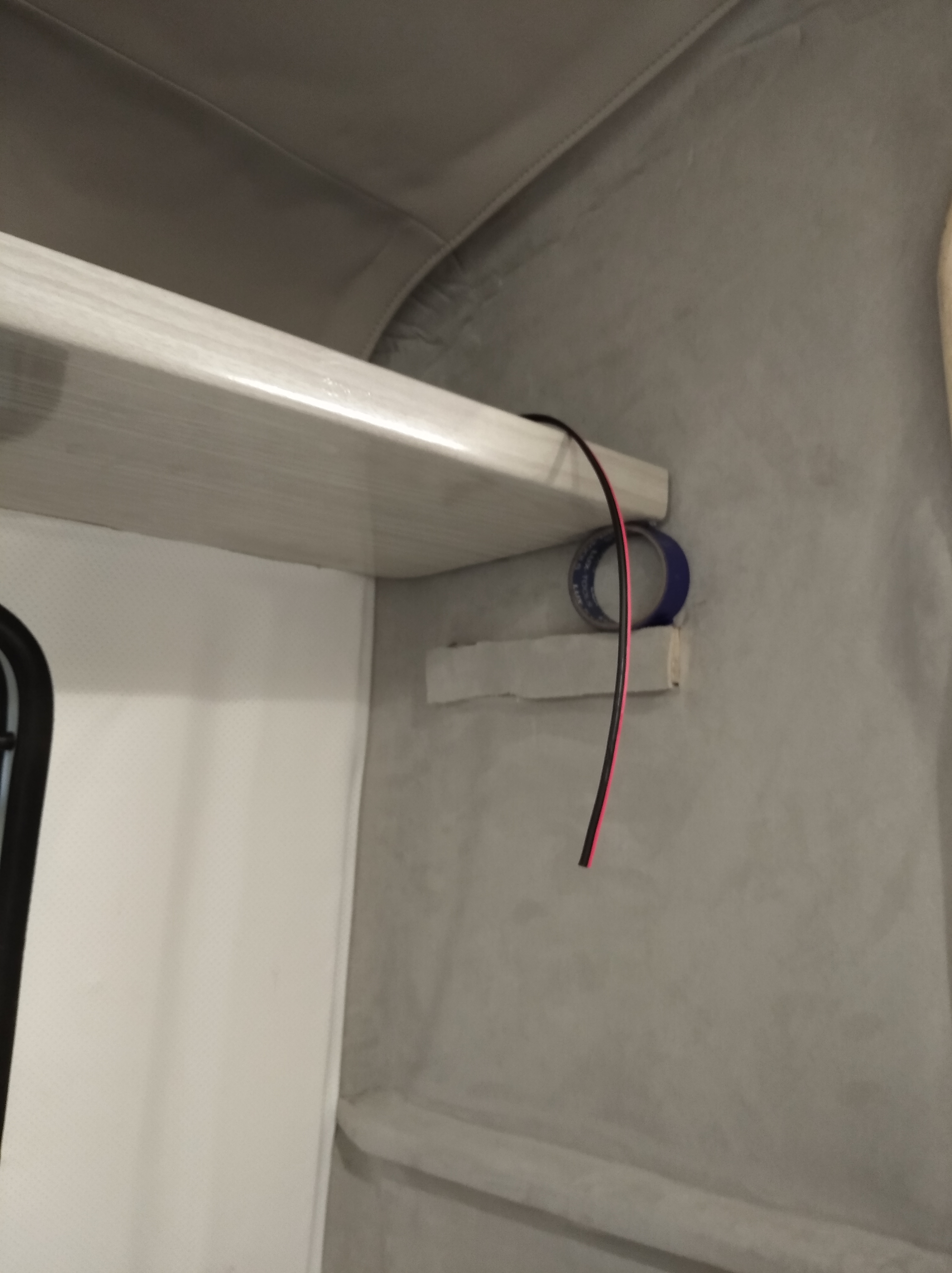 Poziome listwy widoczne pod nim (rolka z taśmą się o to opiera) to wlaminowane wcześniej listewki, na których będzie wsuwane na dzień łóżko górne mojego pomysłu.