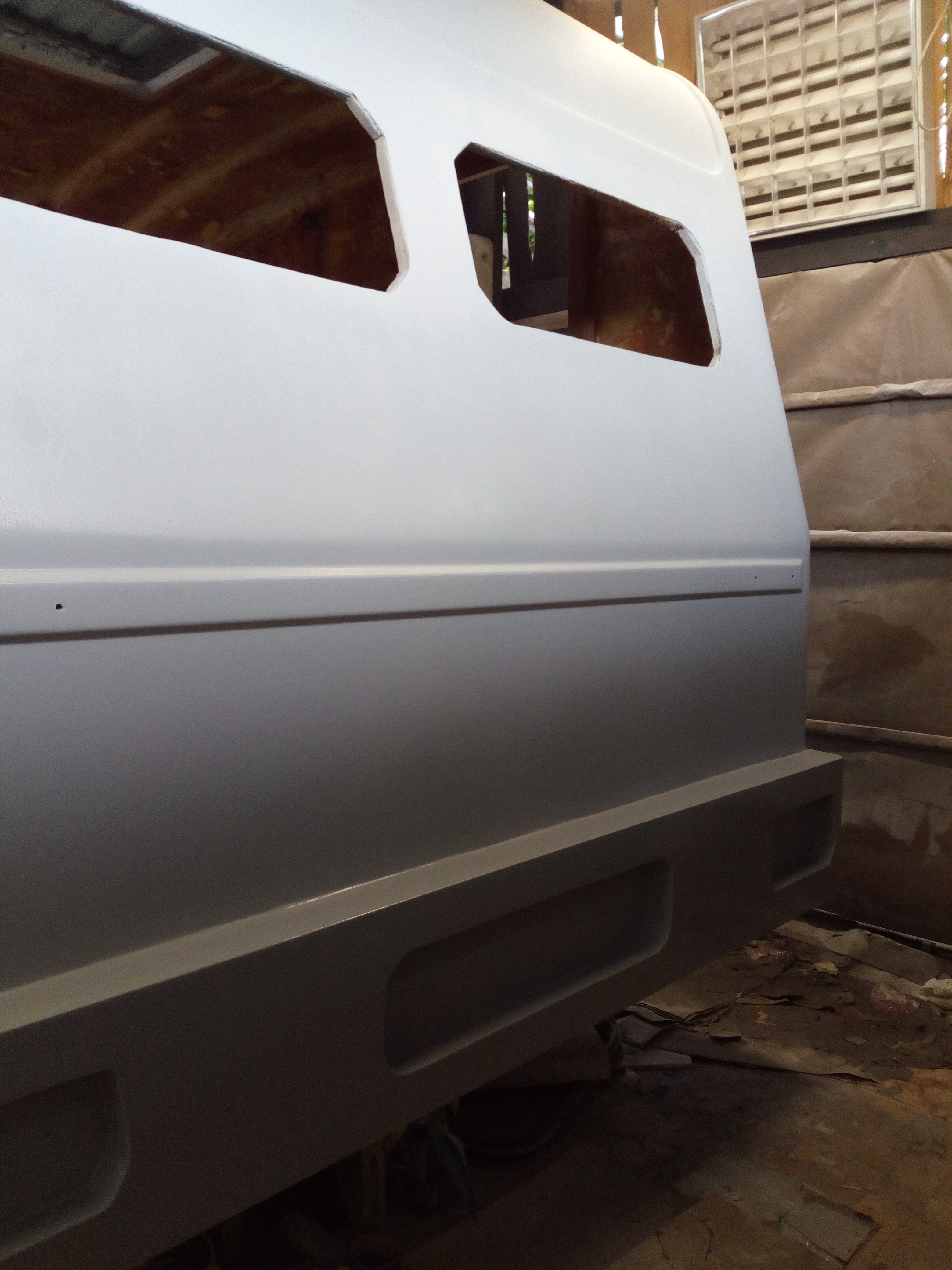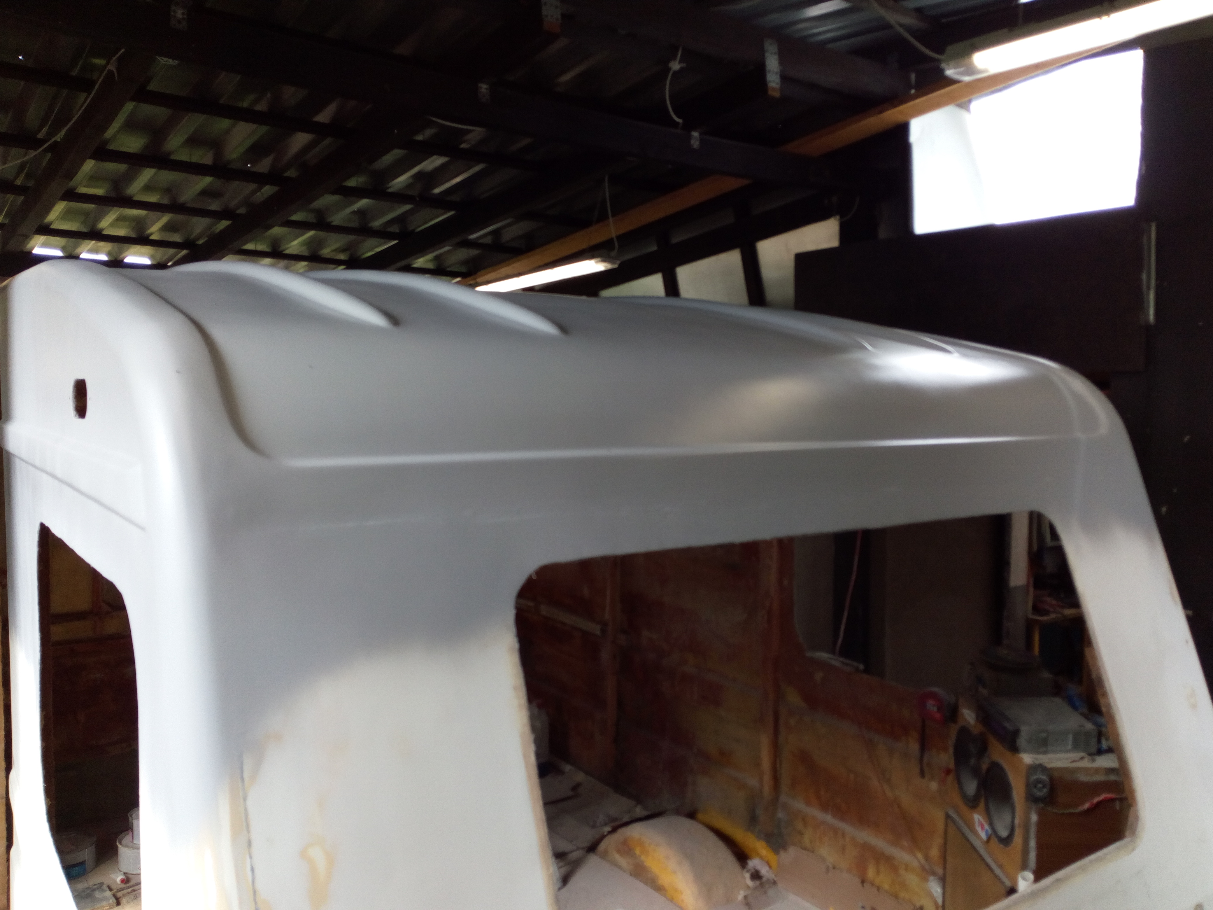 Jadę dalej z tematem;ogrom pracy za mną. Na razie podkład, ale już jakieś efekty w końcu widać...jeszcze mi została lewa strona do zrobienia....ass mode w końcu opanowany do końca. Ach gdyby nie te modyfikacje już miał bym dawno pomalowaną. Znalazło się też miejsce na prysznic zewnętrzny. A tak ogólnie to mam dosyć szlifuj-szpachluj, szlifuj-szpachluj...Na ostatnim zdjęciu widać ładnie krzywiznę dachu. No cóż, tak ktoś wcześniej naprawił, dosyć solidnie, ale krzywo. Teraz chociaż okno dachowe będzie prosto. W miejscu łazienki sufit niżej o 1 cm - życie...