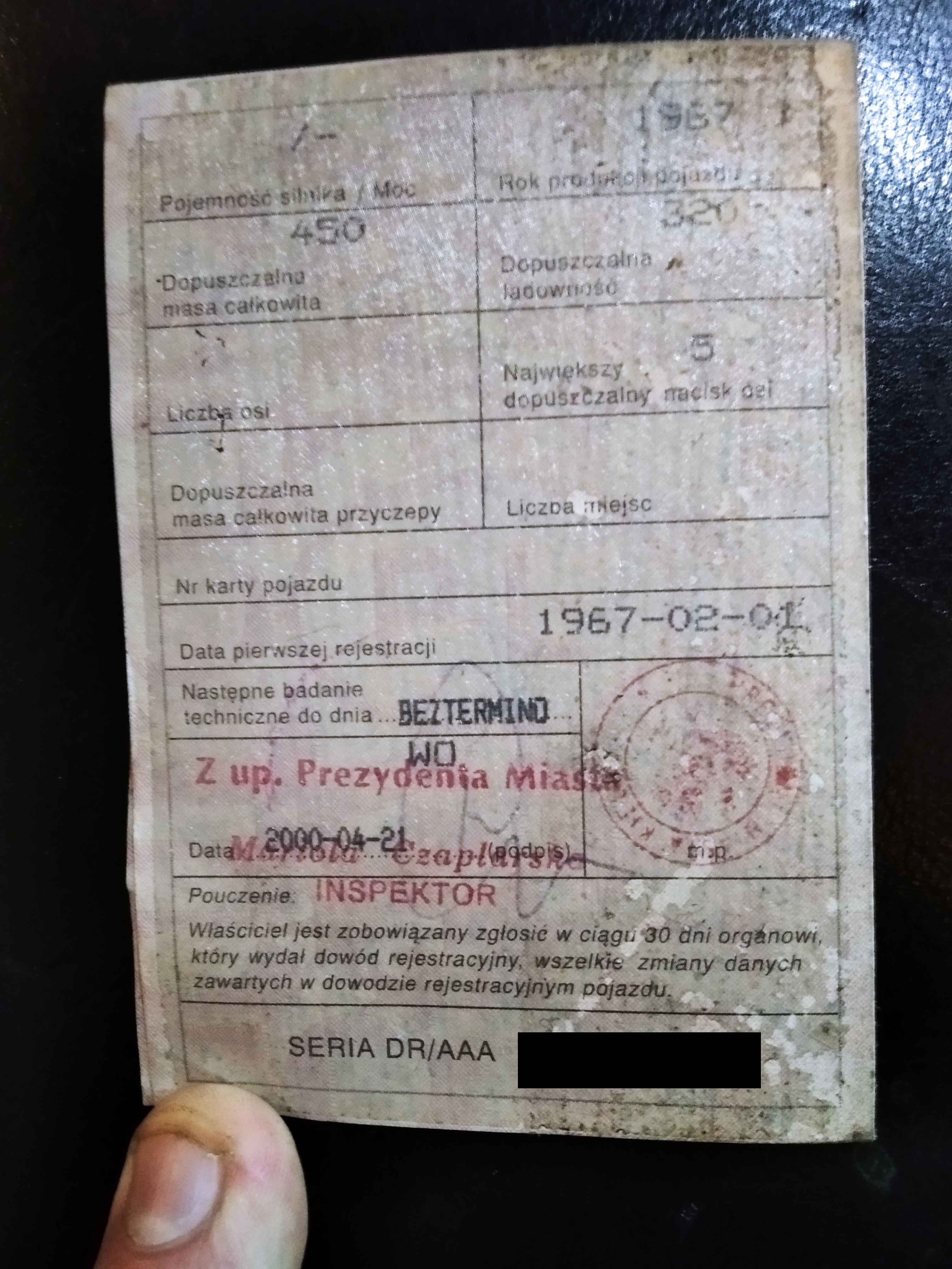 No i zaczyna się walka. W ostatnim tygodniu po 20 latach stania wyrwałem i to dosłownie (obrosła bluszczem) Trampa. Jest ona z 1966, choć na tabliczce wybito 1969 według mnie omyłkowo ktoś nabił numeratorem do góry nogami gdyż pierwsza rejestracja jest 1.02.67r.