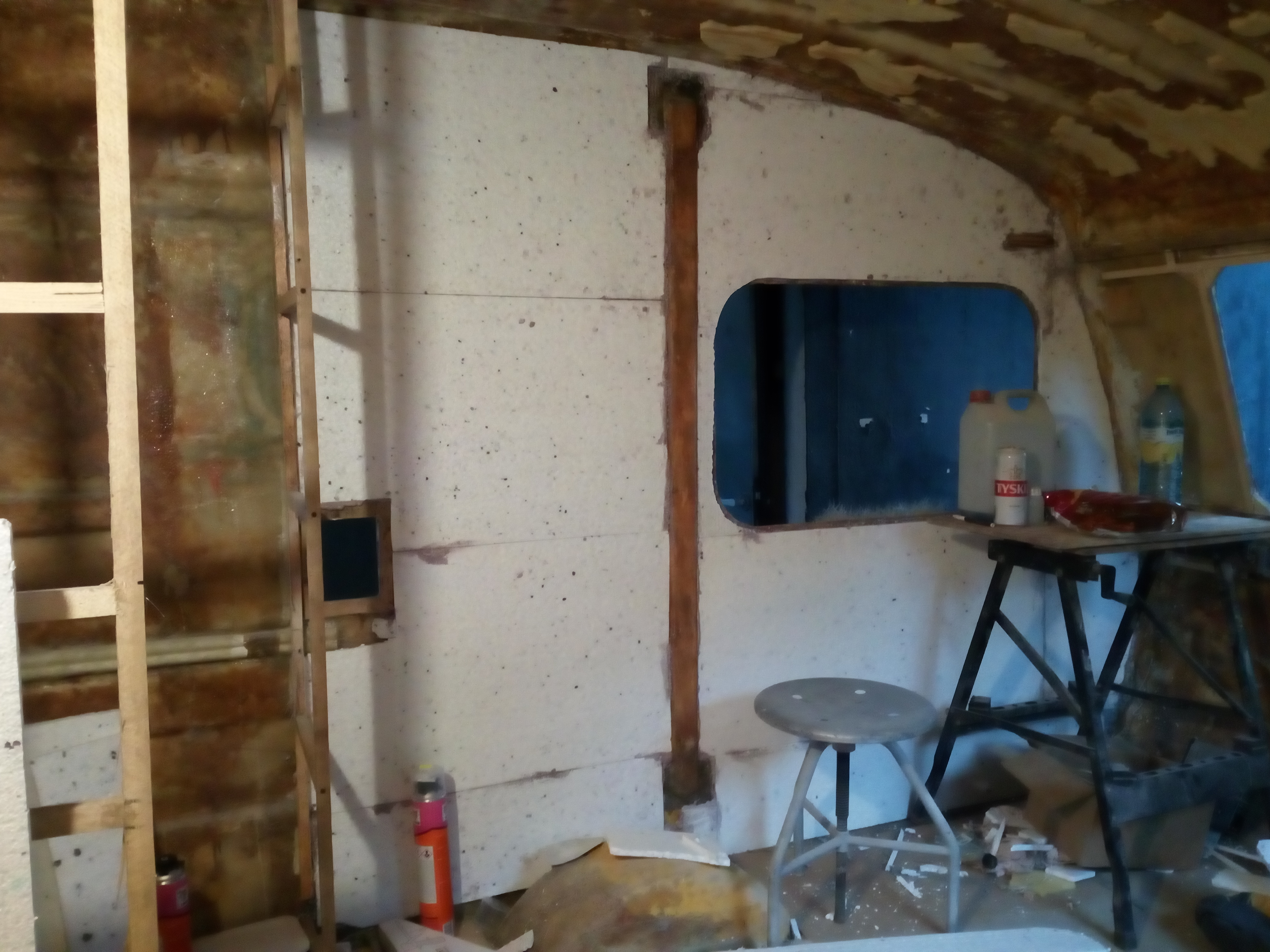 Odcięcia nie będzie widać; listwy okienne i kedrowe zasłonią. Tym czasem to już nie jest podkład, a w końcu pomalowana cała przyczepa!!!!! Jeszcze jak na złość przy ostatnim 0,5 litra pierdyknęła uszczelka pod głowicą w sprężarce. Resztę musiałem na 24litrowej; myślałem, że spuchnie z wrażenia.