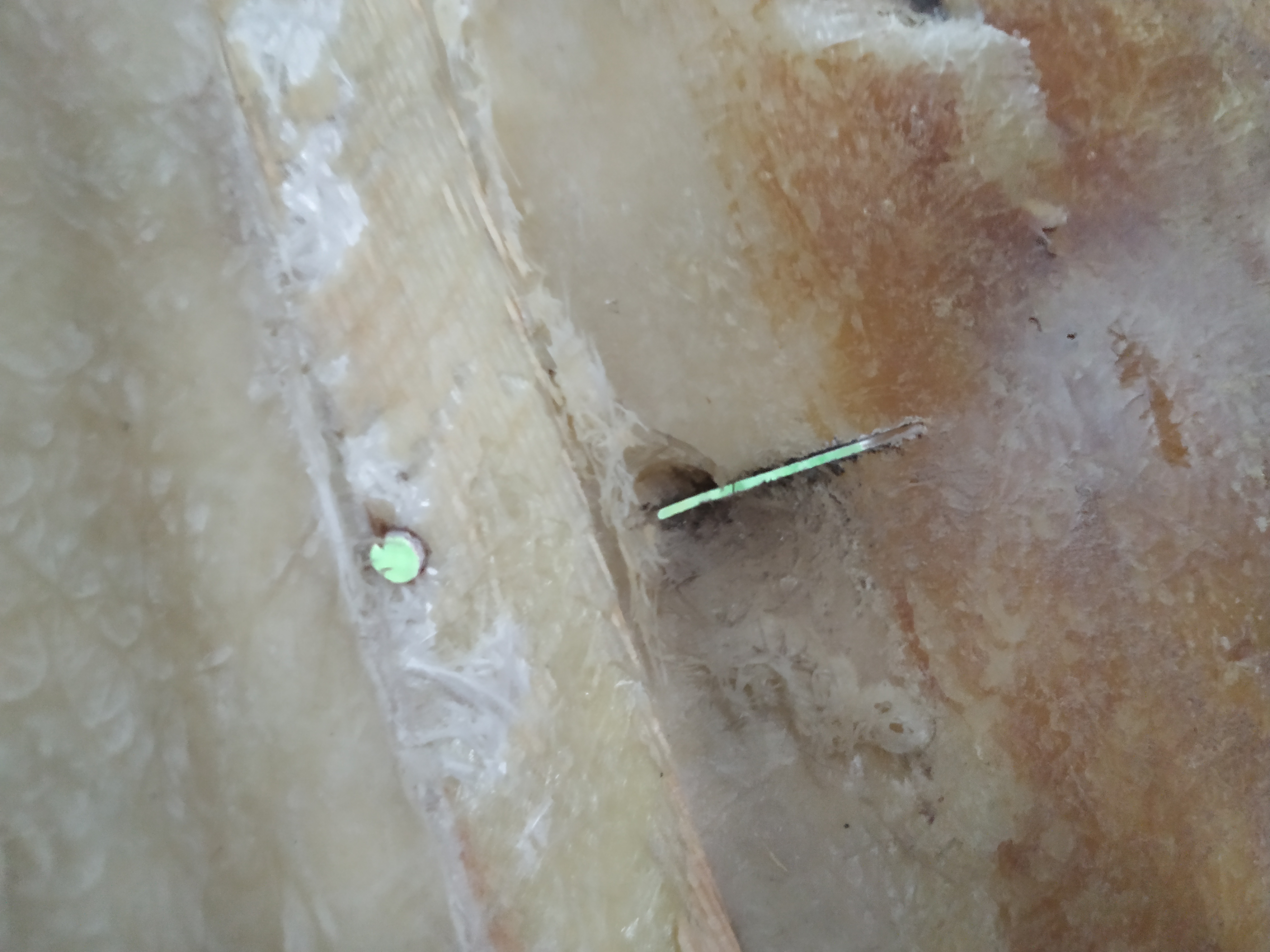 Dorzucam fotki z wczorajszych prac. Czy w miejscach gdzie były śruby pod listwami laminować tylko od środka? Czy może warto też w tych bardziej prześwitujących z zewnątrz? Do samej dziurki po śrubie tylko żywica czy upychać też matę?