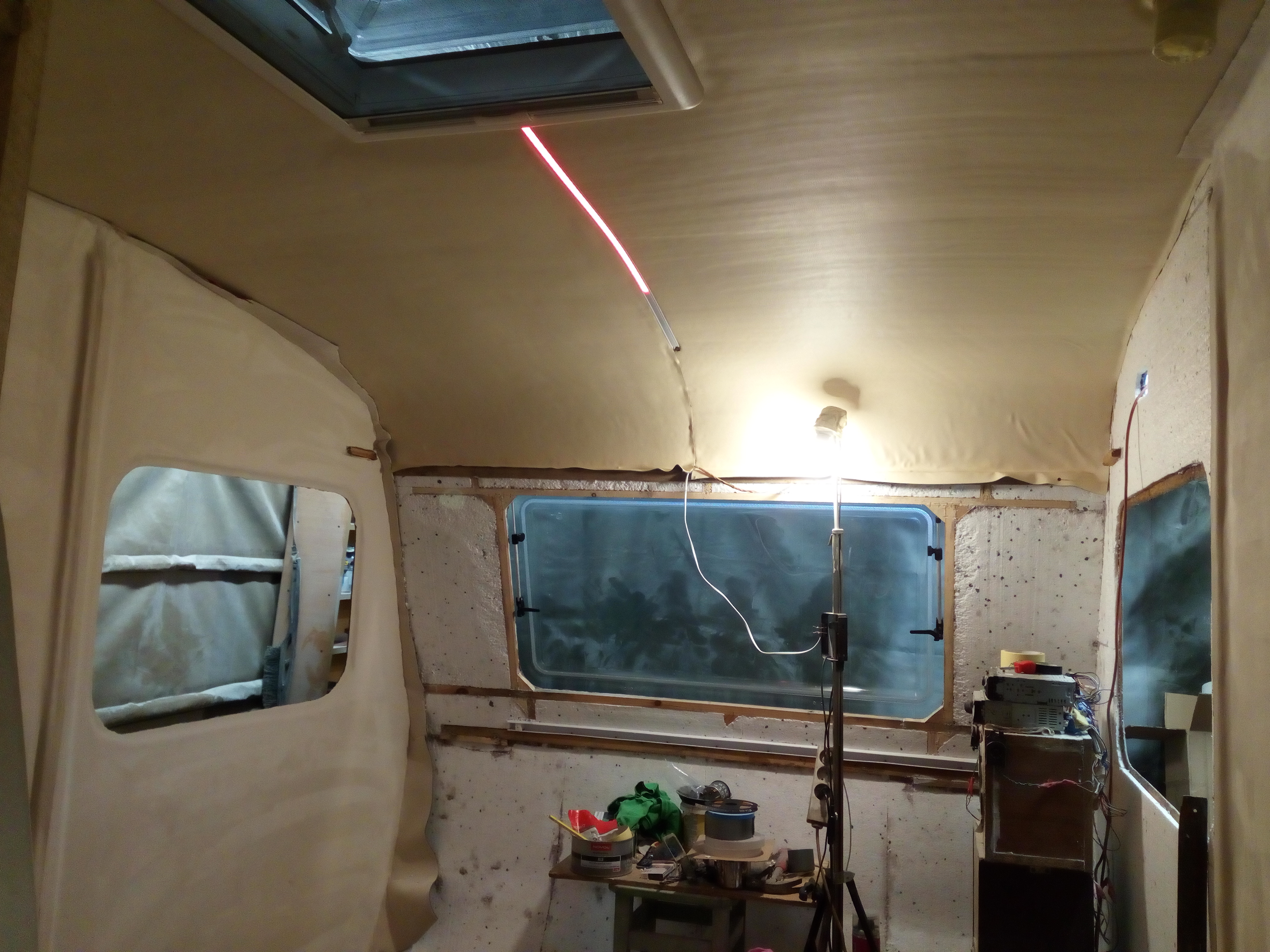 Ech dzinu no jakie wnętrze taka lampa...industrial... Podłączyłem światła z tyłu wylałem żywicę na brodzik celem wyrównania i zalania niedoskonałości laminowania i nad brodzikiem ogarnąłem w końcu po przemyśleniach otwór techniczny w razie W. Materiał na środek kupiony, na materace i pokrowce kleje i inne bajery...