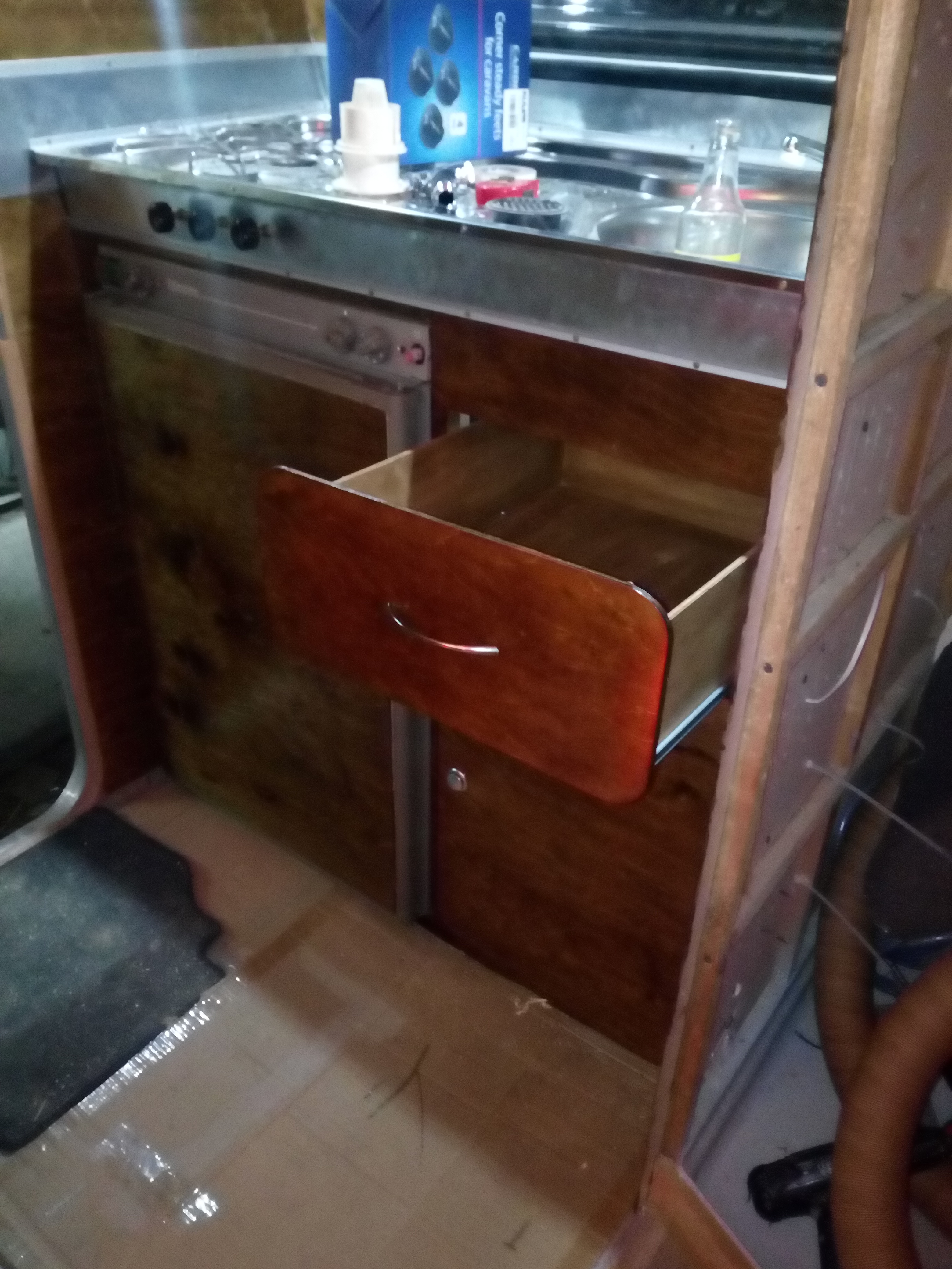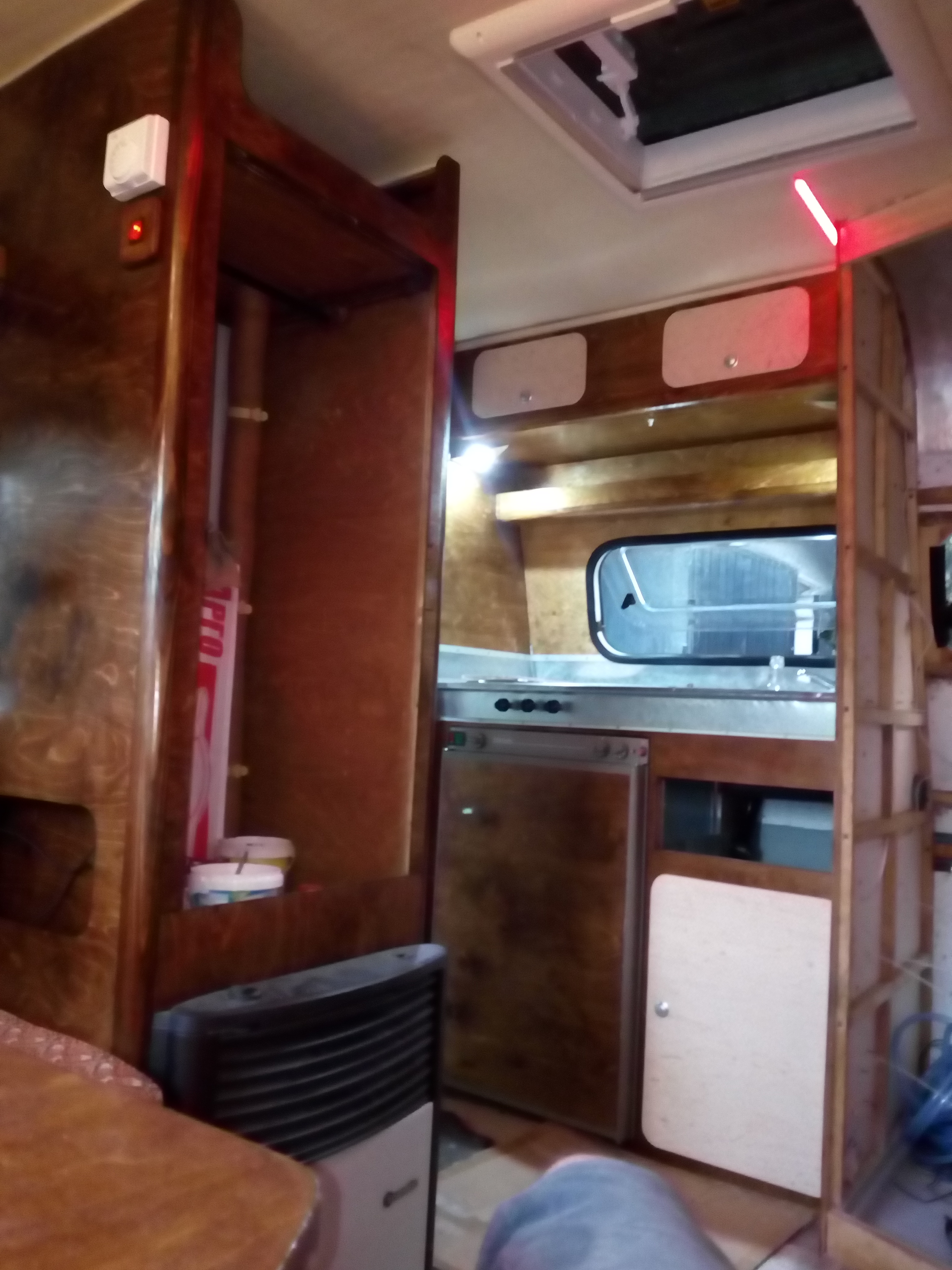 Jest stół, zatem można sobie usiąść i no... Faktycznie znaleźć coś na nowe meble jest naprawdę ciężko w szczególności jeśli dbamy o masę naszych przyczepek. To co Marcin zrobił jest kapitalnym pomysłem zarówno wagowo jak i estetycznie. Naprawdę jeśli chcemy się zmieścić w 100 kg jest cholernie ciężko + te wather klozety :lol: Sklejka 4 mm to taki max grubości; niby tylko szafa, balisty, parę półek ale jedno do drugiego i się zrobi trochę kg. A gdzie reszta bajerów...