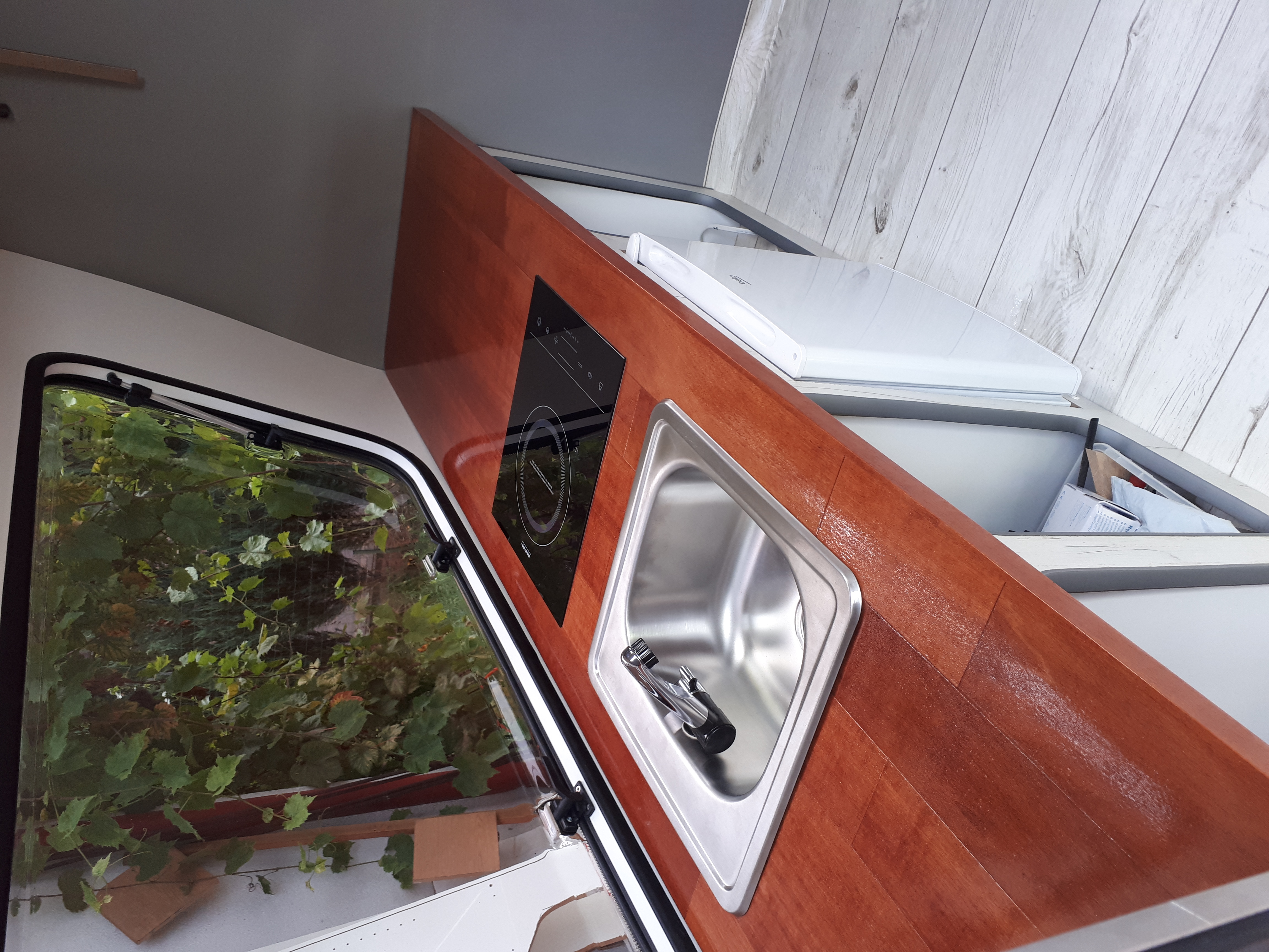 Ławostół prawie gotowy do lakierowania; sklejka i drewno moabi.