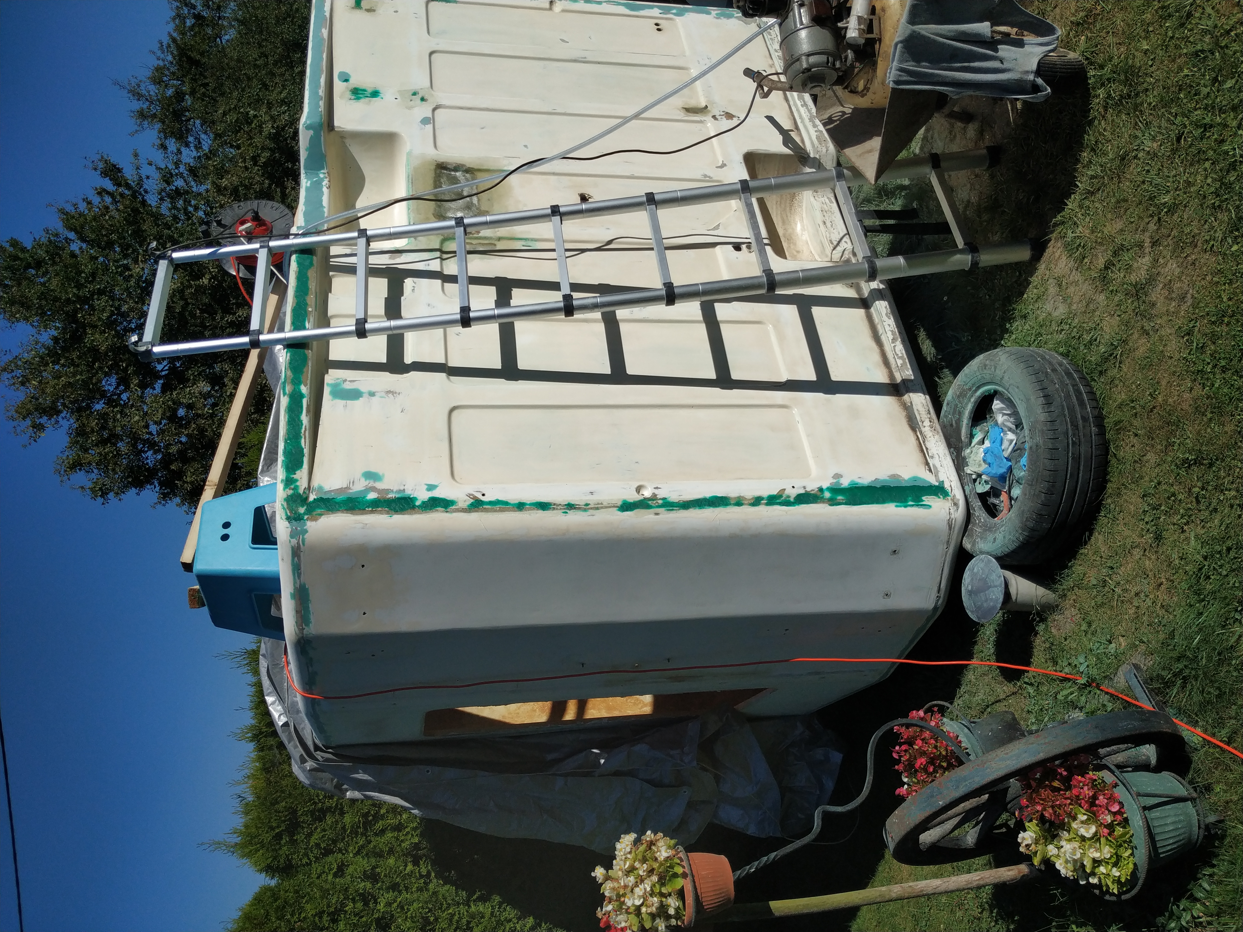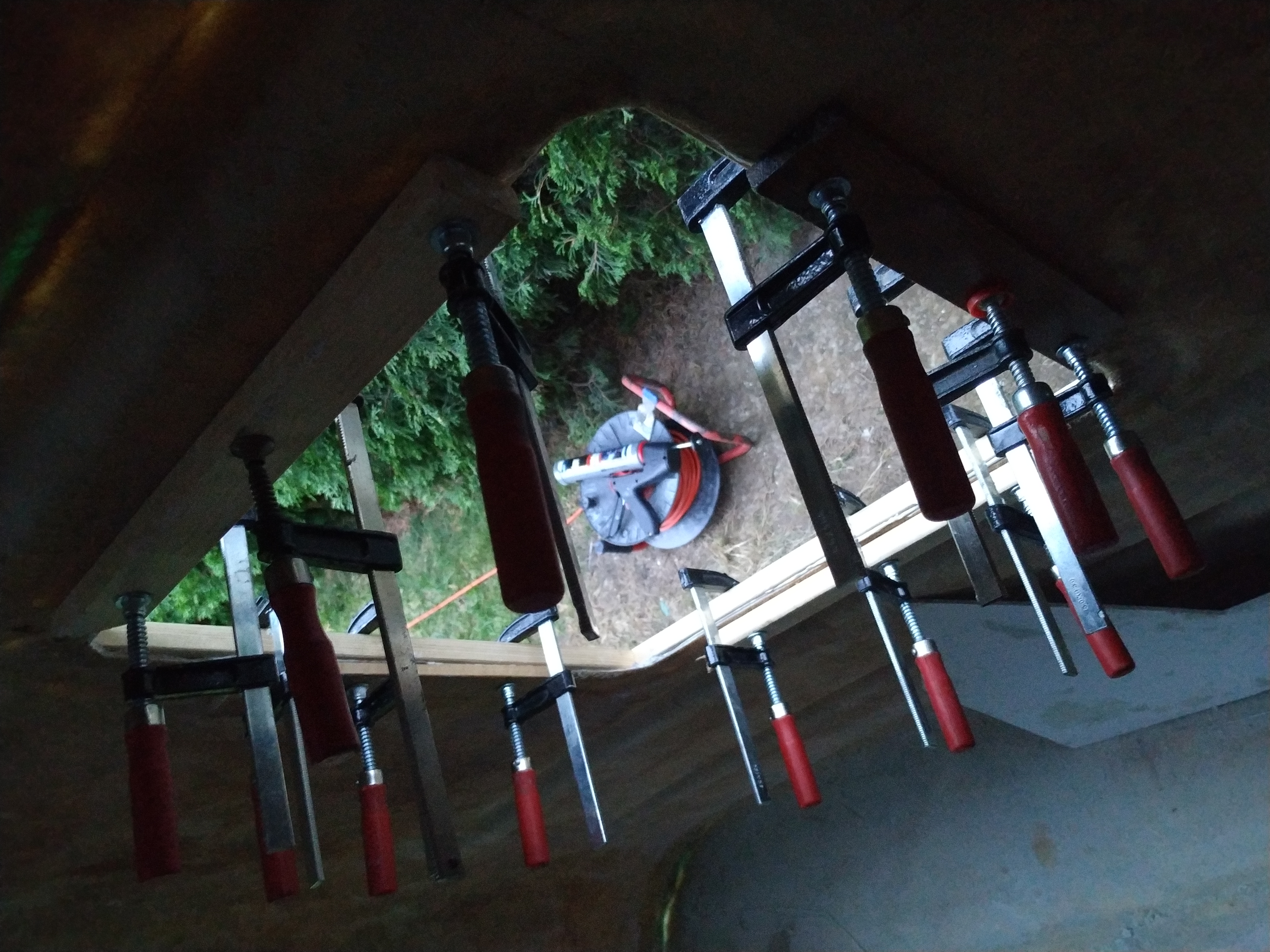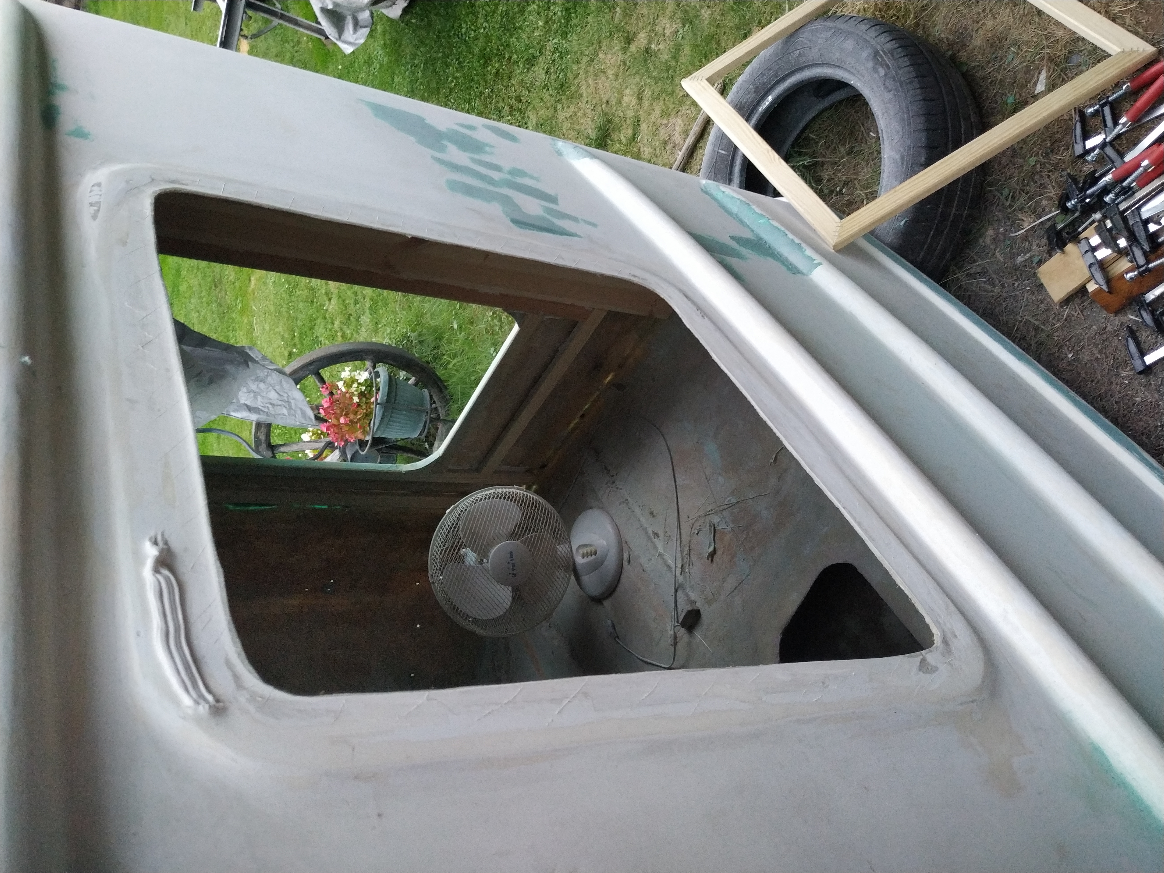 Spód wreszcie pomalowany. W zeszłą sobotę podkład, a dziś farba. Wycięty rant pod nowe okno dachowe i wklejona część zewnętrza ramki. Docięte i wklejone listwy do drzwi.