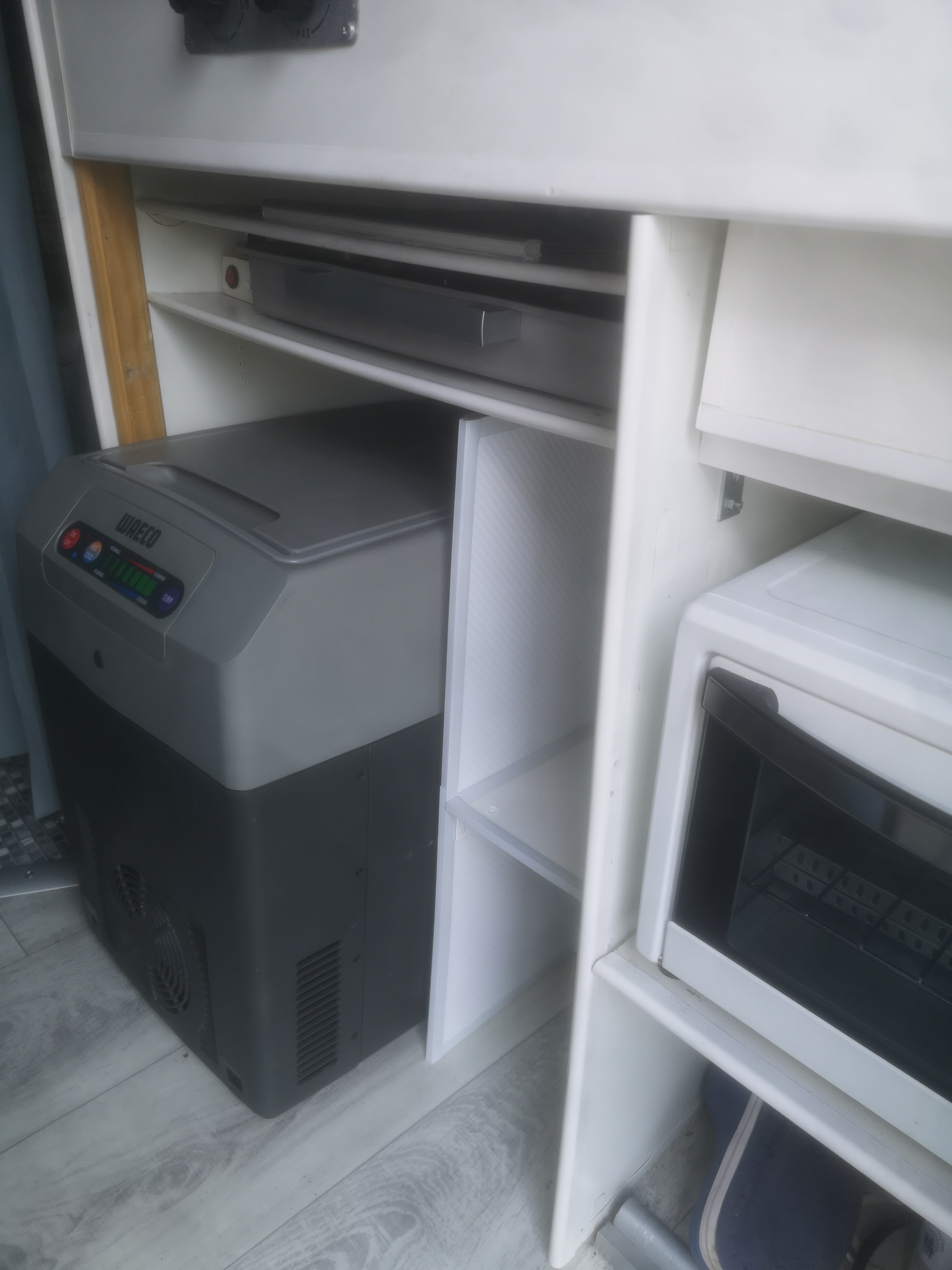 Dorobiłem do swojej Niewiadki wysuwany podest. Wykorzystałem do tego celu drabinkę stosowaną w naczepach którą można zakupić na Allegro. Właśnie wróciłem z majówki i sprawdził się super - nie trzeba wozić ze sobą podestu który zajmuje sporo miejsca.