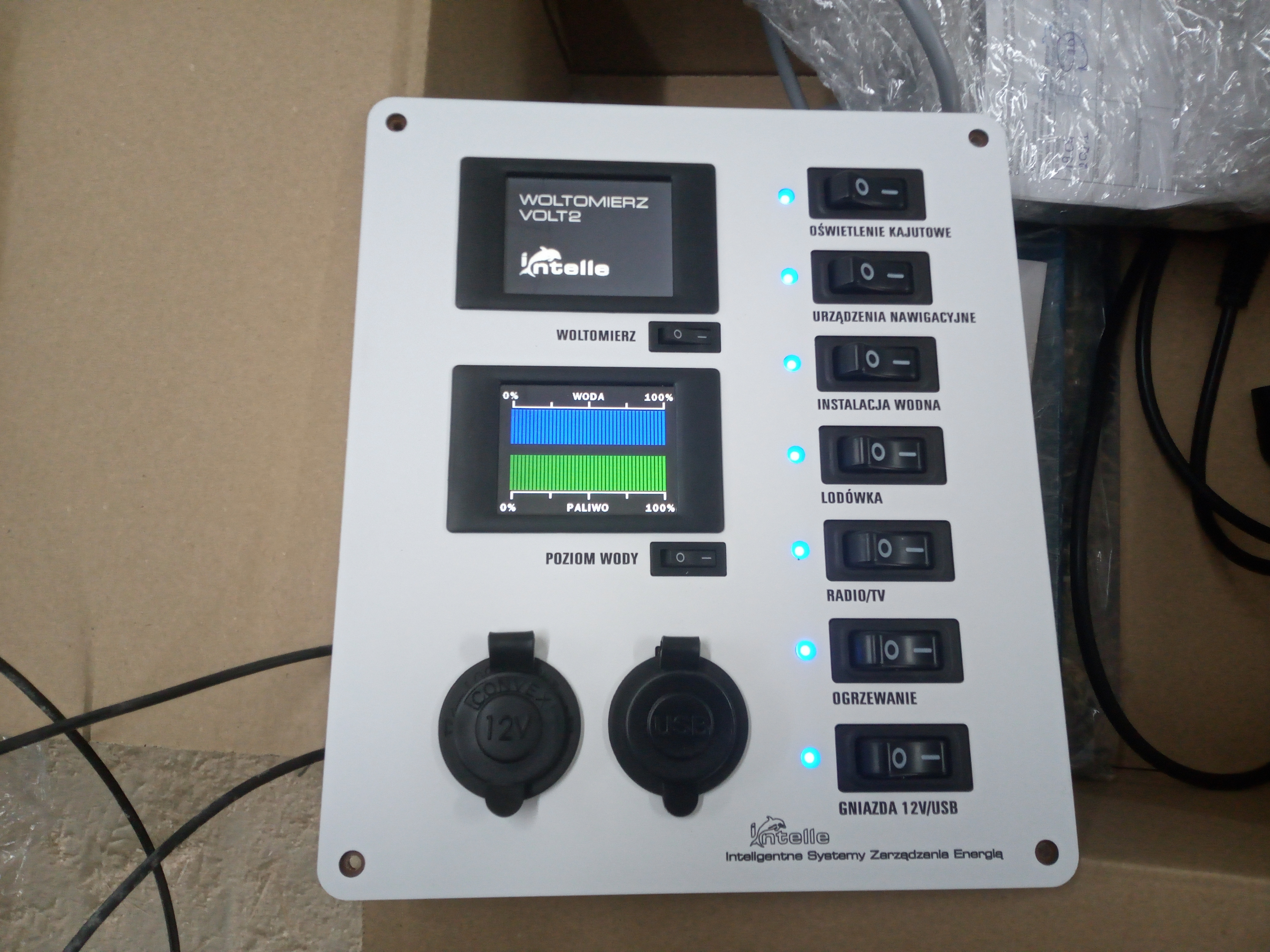 Wracając na chwilę do wskaźnika poziomu wody, mam nadzieję że nie będzie miał Kolega za złe, jeśli pochwalę się odebraną tabliczką o której wspominałem, jest to tylko część zestawu, reszta to skrzynka sterownicza do tabliczki, automatyczna ładowarka 25A dla trzech aku i ów aku AGM 120 Ah.