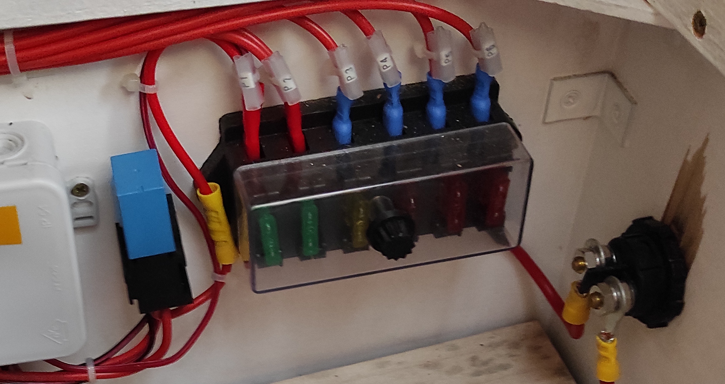 Musze przyznać, że jeśli chodzi o estetykę "elektryczną" to nie jest to mój konik. Jak skończę, to będę porządkował te przewody. Rozdzielnica, którą podesłałeś Adamie jest bardzo fajna. Może przy następnych pracach ją wykorzystam albo zmodyfikuje swoją w późniejszym czasie. Wykorzystałem skrzynkę bezpieczników na 8 obwodów, przewody łączone na konektory 6.3mm takie jak w starej motoryzacji oraz druga skrzynka 4 obwodowa dla regulatora i panela słonecznego.