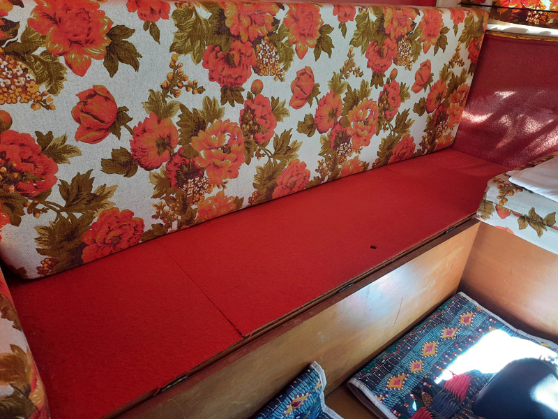tak wyglądają schowki oklejone ponad 40 lat temu przez moją Mamę, która kocha tą przyczepkę i cieszy się, że coś się dzieje.