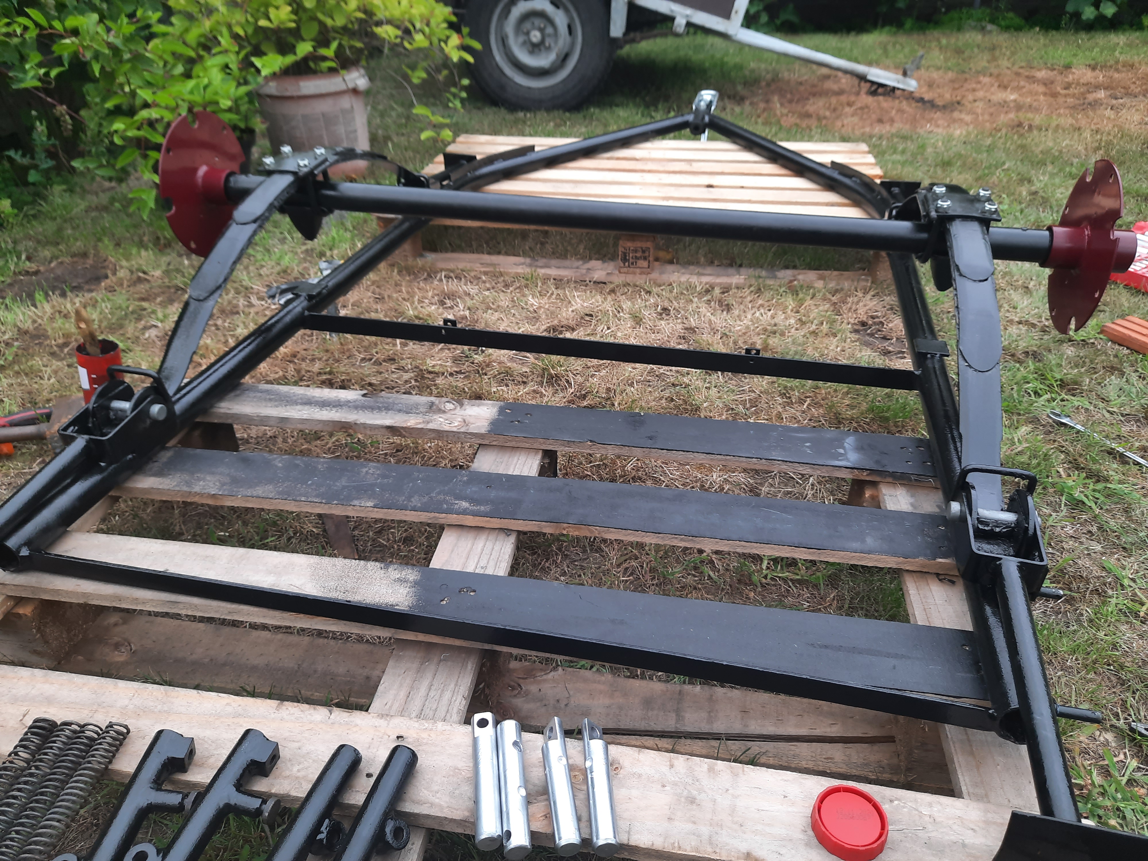 Rama jest gotowa, resory poskładane, smaru grafitowego nigdy za wiele. Niestety nie mogę jeszcze założyć amortyzatorów... Czekam aż wrócą z regeneracji (będą oryginalne).