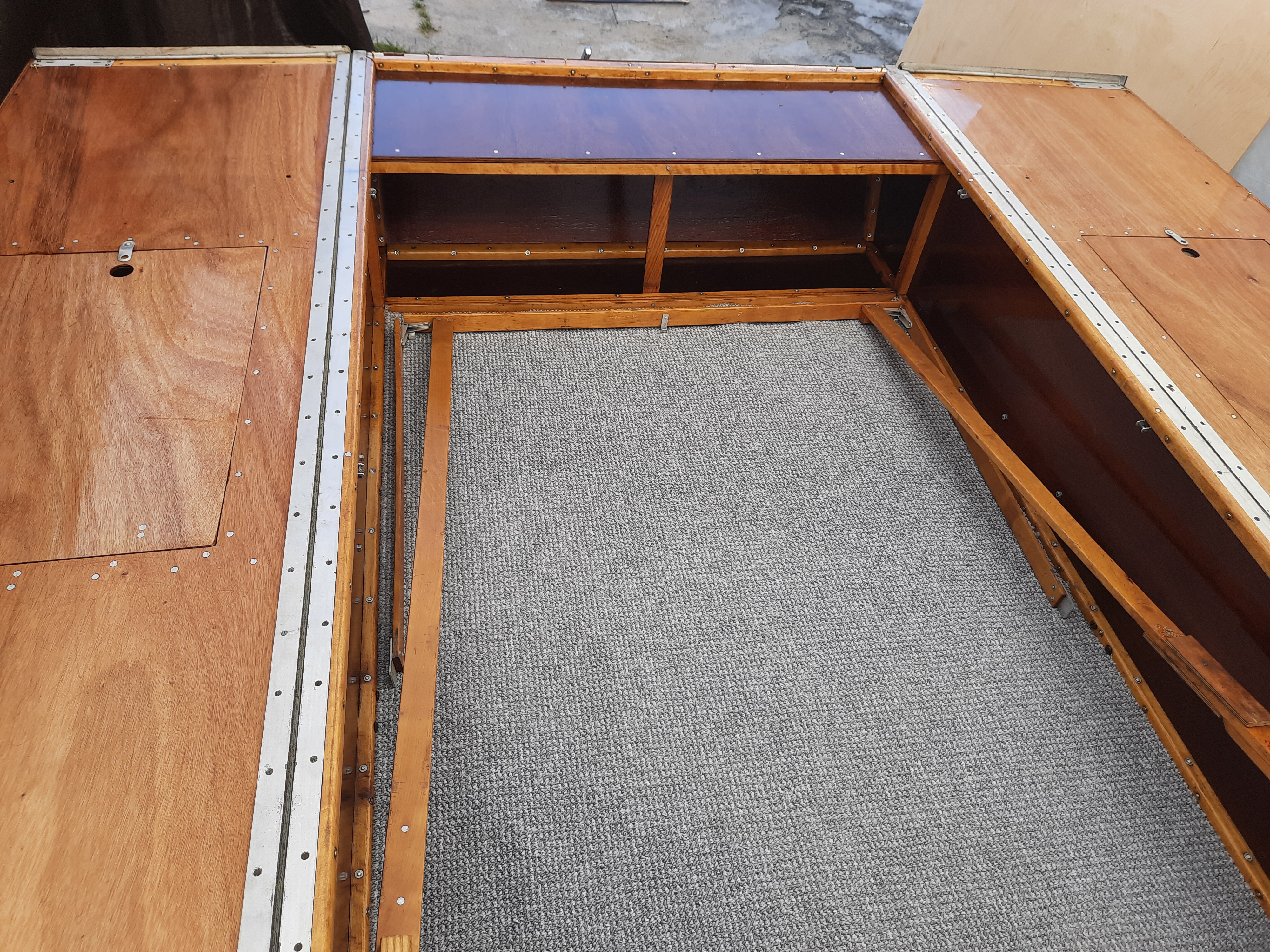 Dorobiłem dodatkowo sklejkę z nóżkami do wstawienia bezinwazyjnie pomiędzy "skrzydła". Taka dostawka da możliwość spania nam z Żoną w poprzek, obok siebie na wygodnym dmuchanym materacu o szerokości 120 cm.